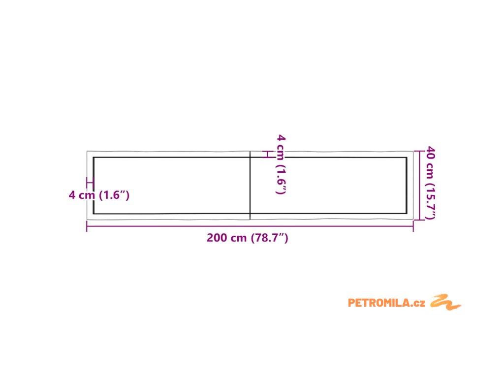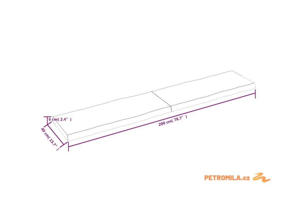 Stolní deska tmavě hnědá 200x40x(2-6)cm ošetřený dub živá hrana
