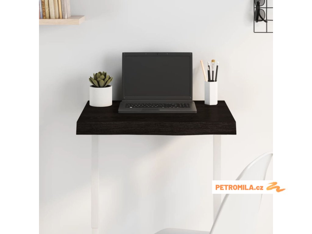 Stolní deska tmavě hnědá 60x40x(2-6)cm ošetřený masivní dub