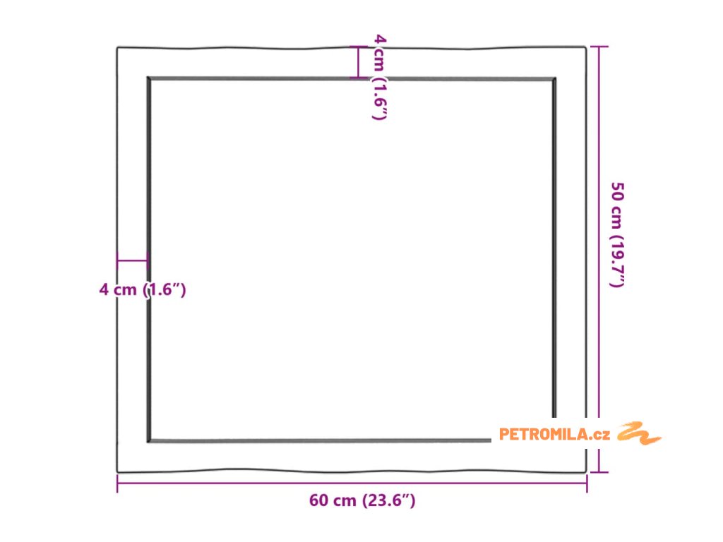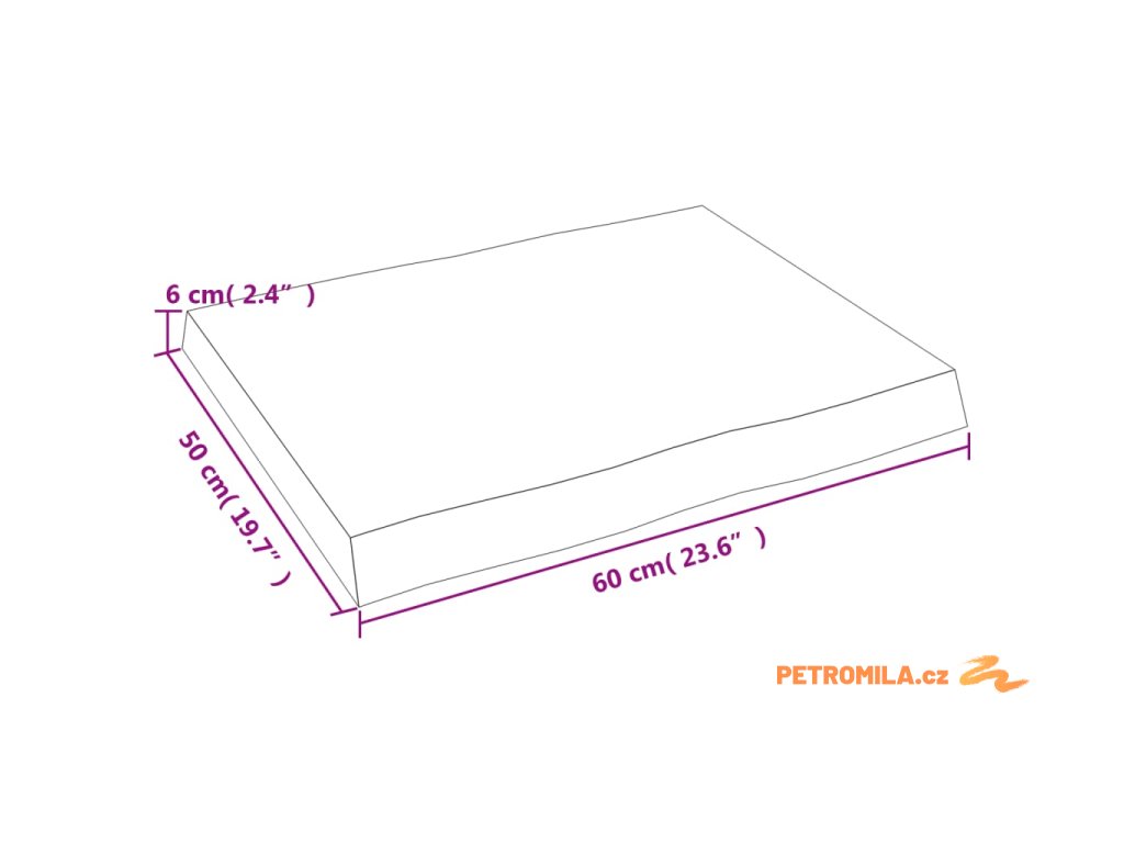 Stolní deska tmavě hnědá 60x50x(2-6)cm ošetřený dub živá hrana