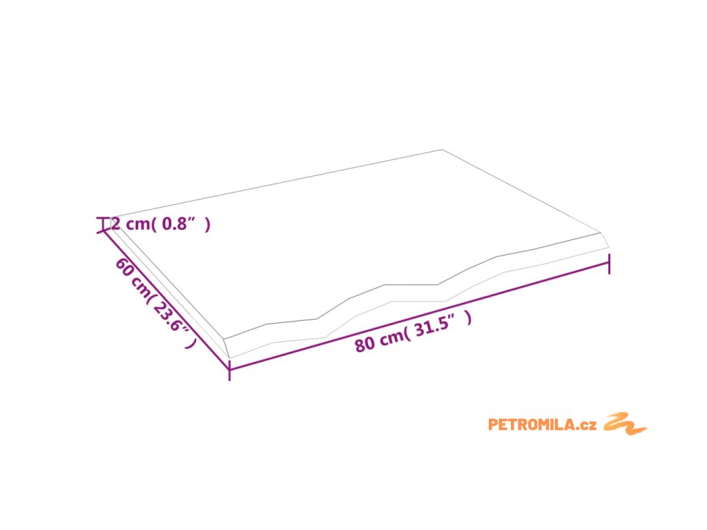 Stolní deska tmavě hnědá 80 x 60 x 2 cm ošetřený masivní dub