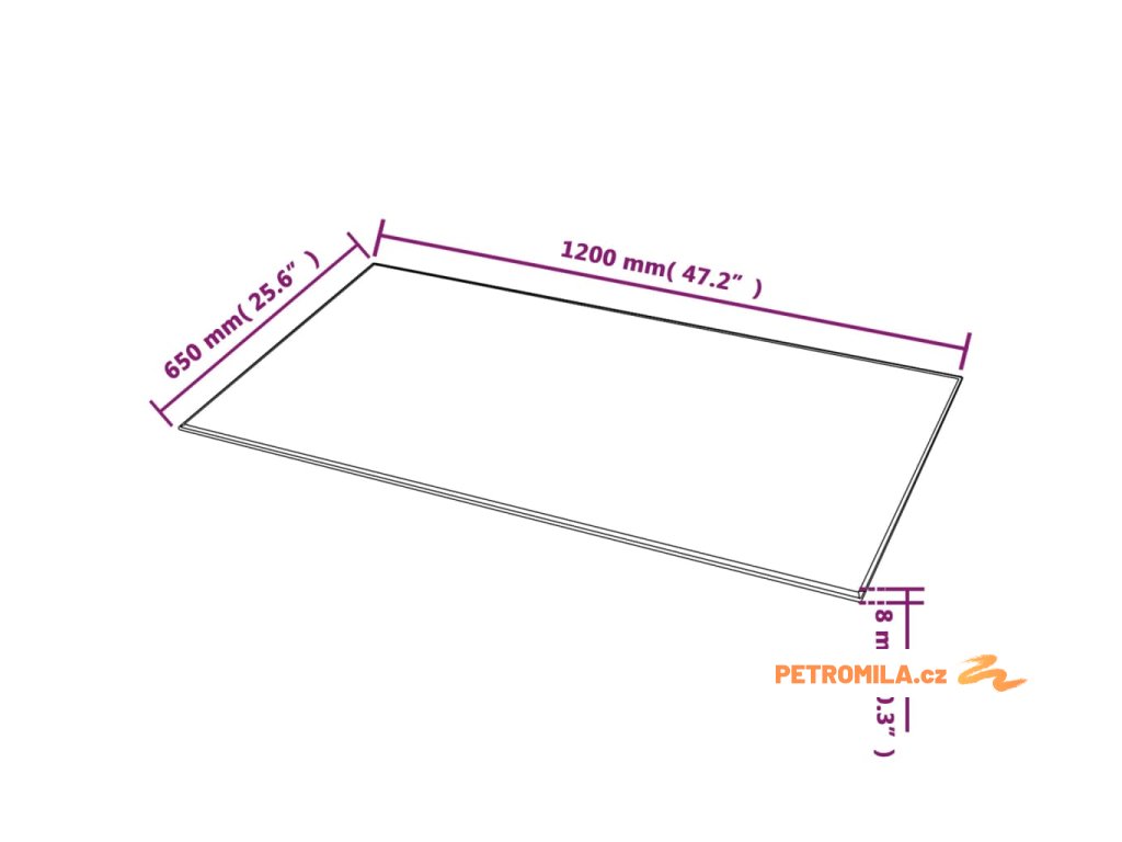 Stolní deska z tvrzeného skla, obdélníková, 1200x650 mm