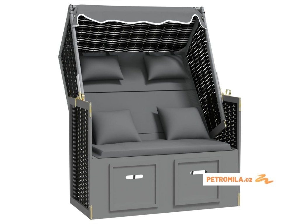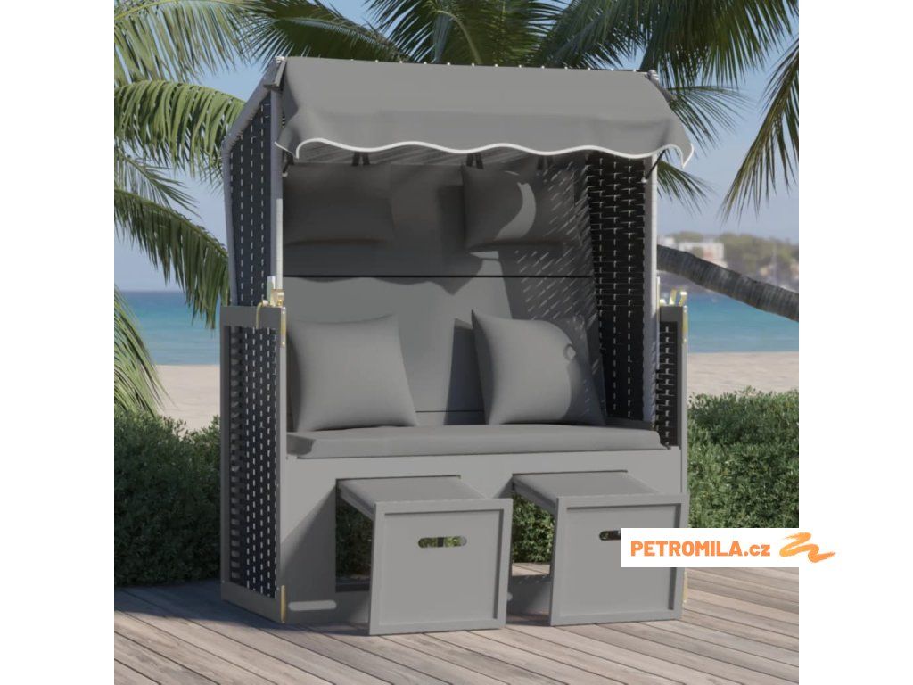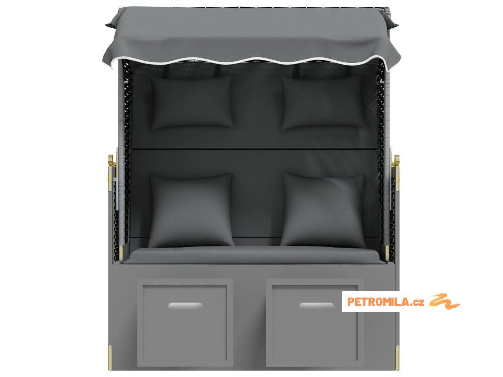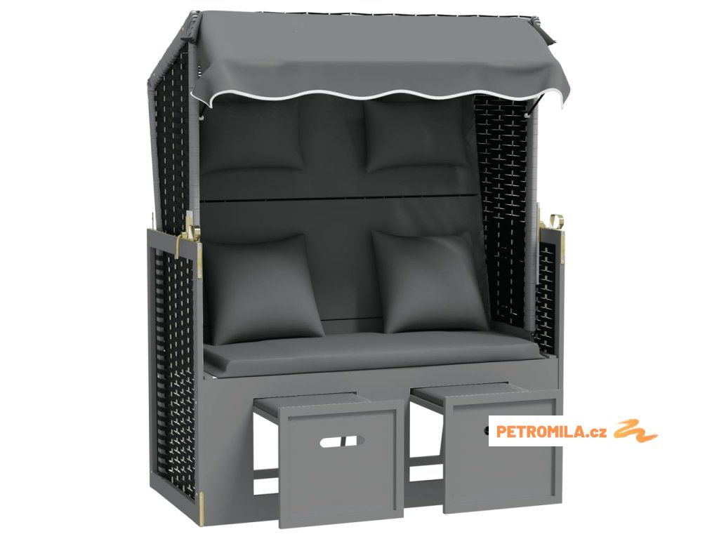 Strandkorb s polštáři polyratan a masivní dřevo antracit/černý