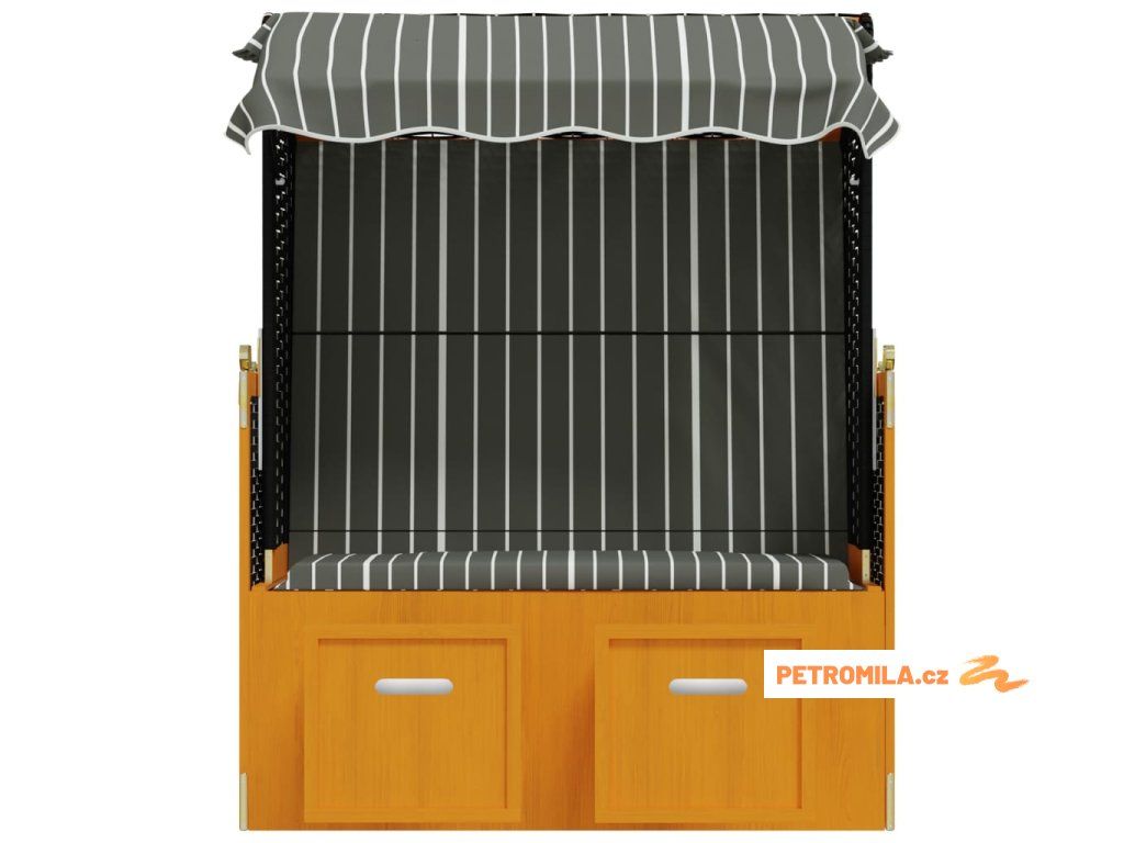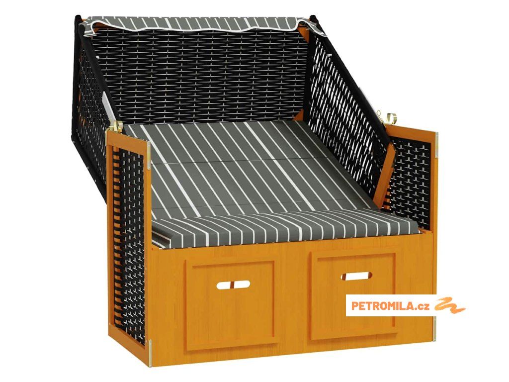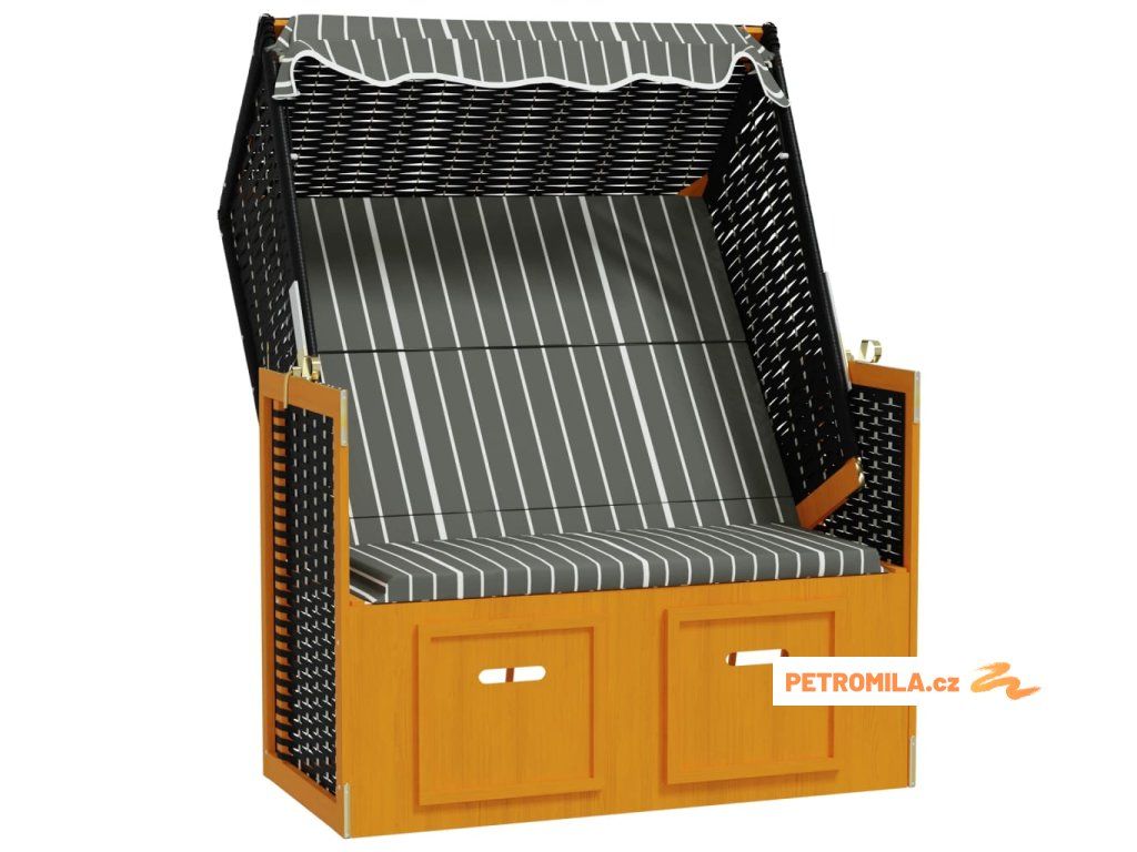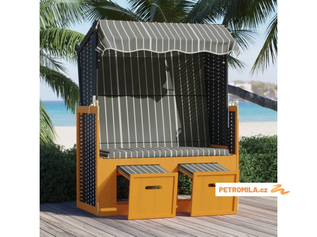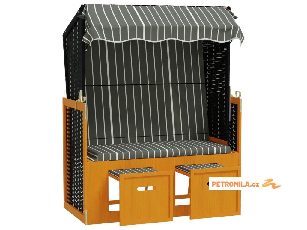 Strandkorb se stříškou polyratan a masivní dřevo černý a šedý