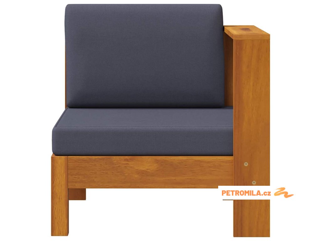 Středová pohovka s 1 područkou tmavě šedá masivní akácie