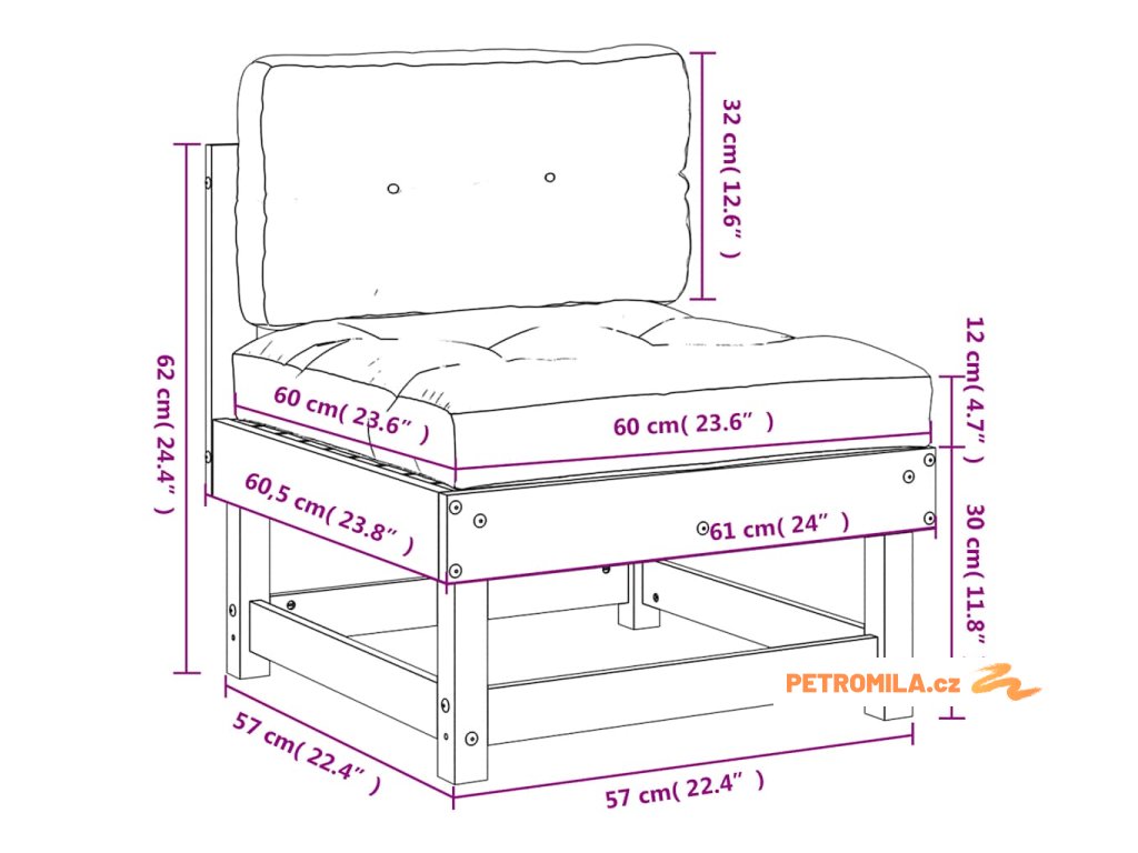 - Rozměry podušky na sedák: 60 x 60 x 12 cm (D x Š x T)