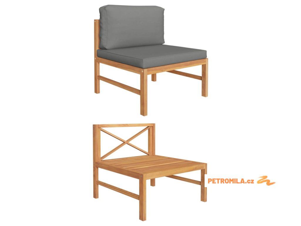 Středová pohovka tmavě šedé podušky masivní teakové dřevo