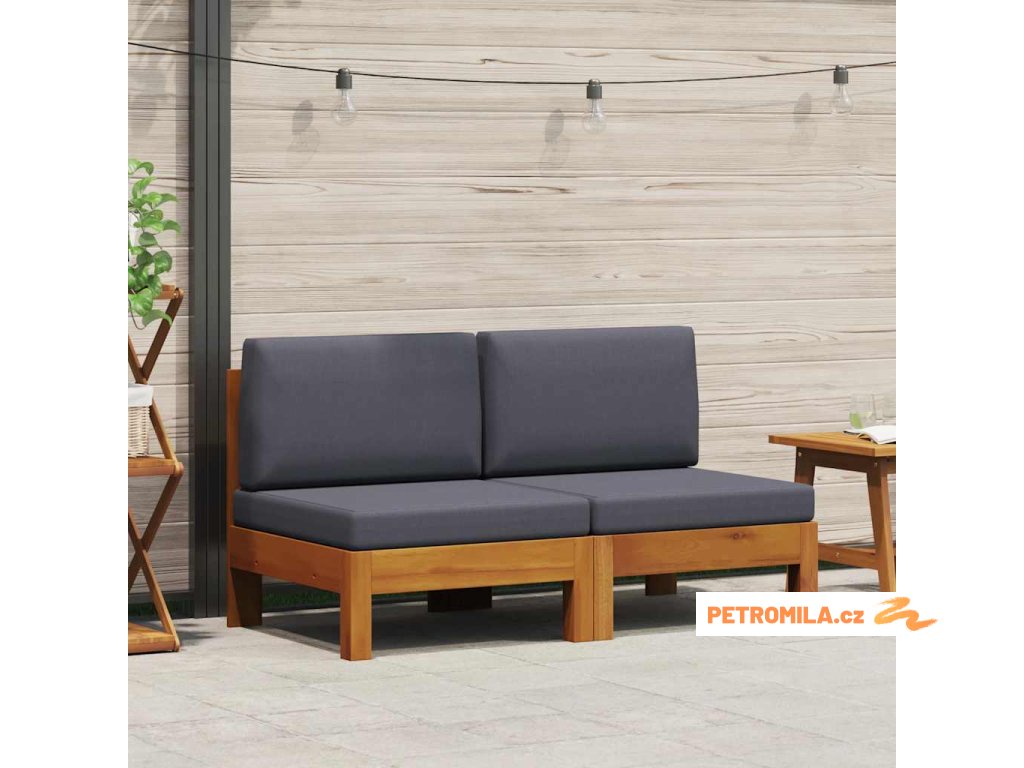 Středové pohovky 2 ks tmavě šedé podušky masivní akácie