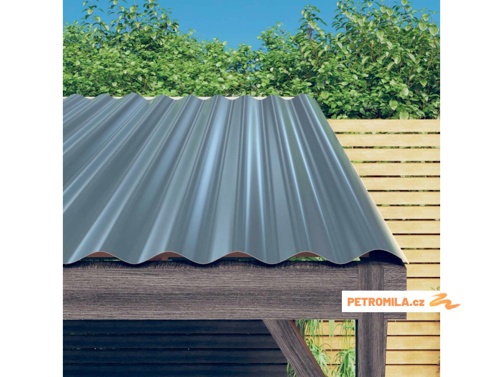 Tato 12dílná sada střešních panelů se skvěle hodí jako střešní krytina pro kůlny, stáje, komerční budovy, mobilní příbytky apod.