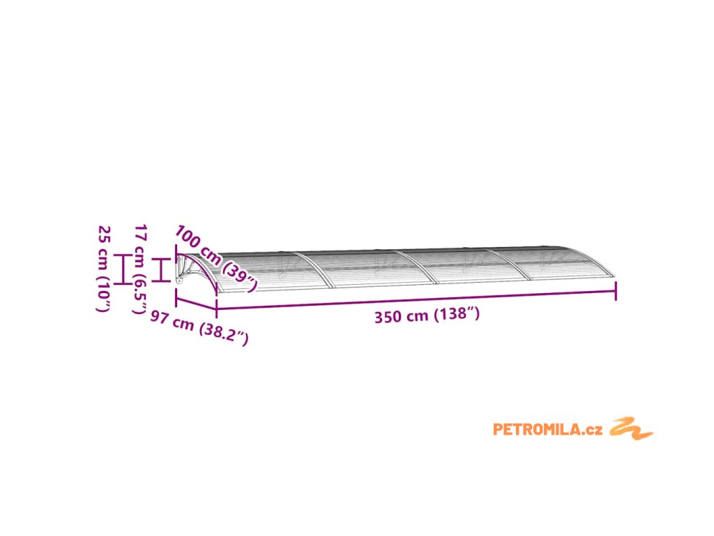 Stříška nad dveře šedá 350 x 100 cm polykarbonát