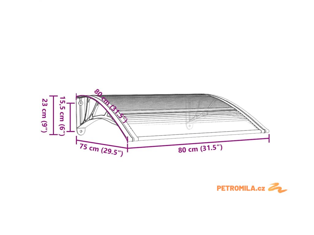 Stříška nad dveře šedá a průhledná 80 x 75 cm polykarbonát