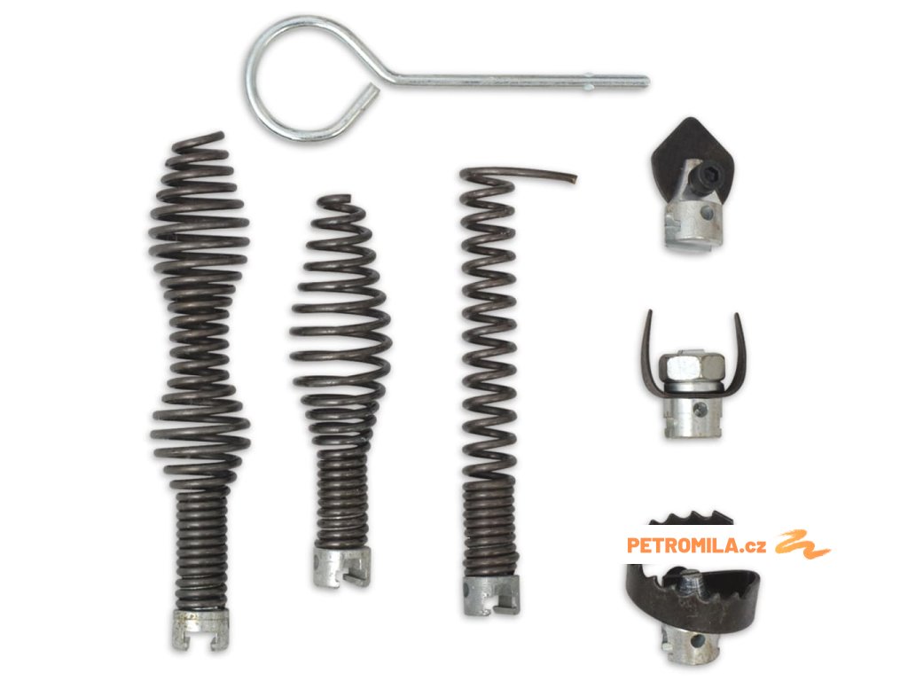V případě potrubí s několika koleny nebo úzkých trubek je vhodné použít spirálu spolu s adaptérem se zásobníkem. Spirálová sada sestává ze tří částečných spirál, které lze kombinovat s T-spojkou. Díky koši na spirály je možné sadu snadno uskladnit nebo přepravit.