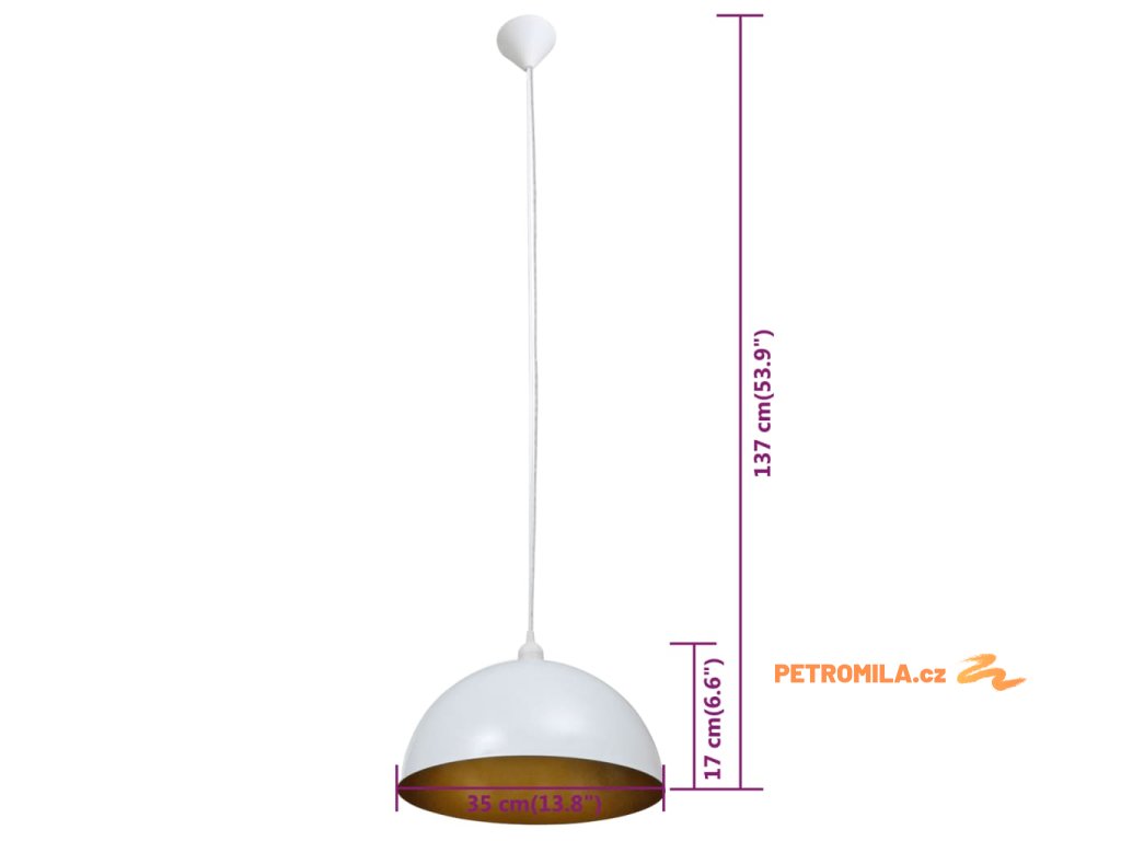 Stropní lampa polokoule 2 ks s nastavitelnou výškou bílá
