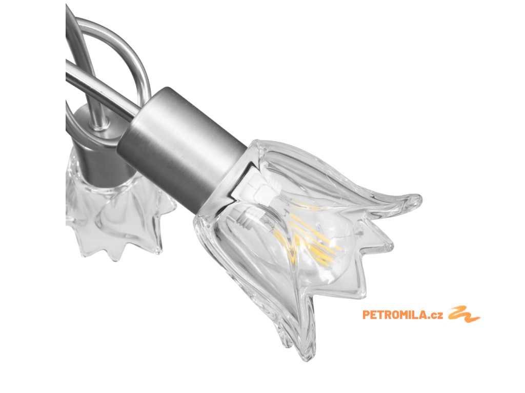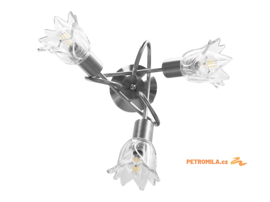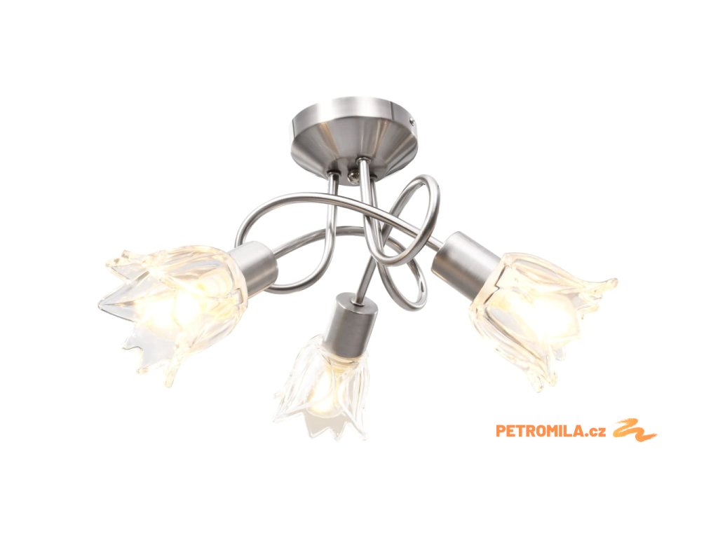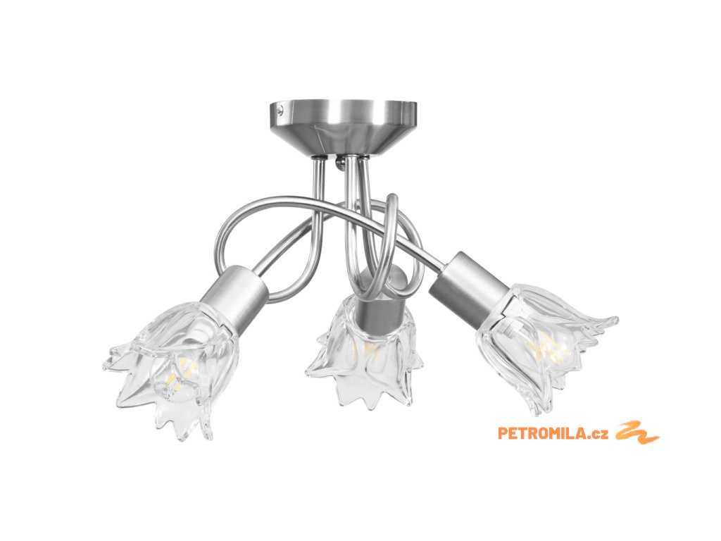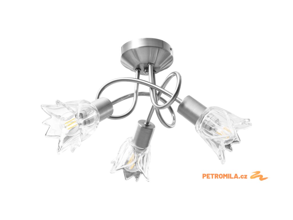 Světlo bez problémů namontujete na všechny typy stropů, jelikož disponuje odolnou kovovou základnou. Elegantní vzhled pak doplňují tři propletená ramena z pochromované oceli a průhledná skleněná svítidla ve tvaru tulipánů. Saténový chromovaný povrch působí moderním dojmem, takže se svítidlo skvěle hodí do obývacího pokoje nebo ložnice všech stylů zařízení. Lampa se snadno čistí a udržuje – postačí vám navlhčený hadřík.