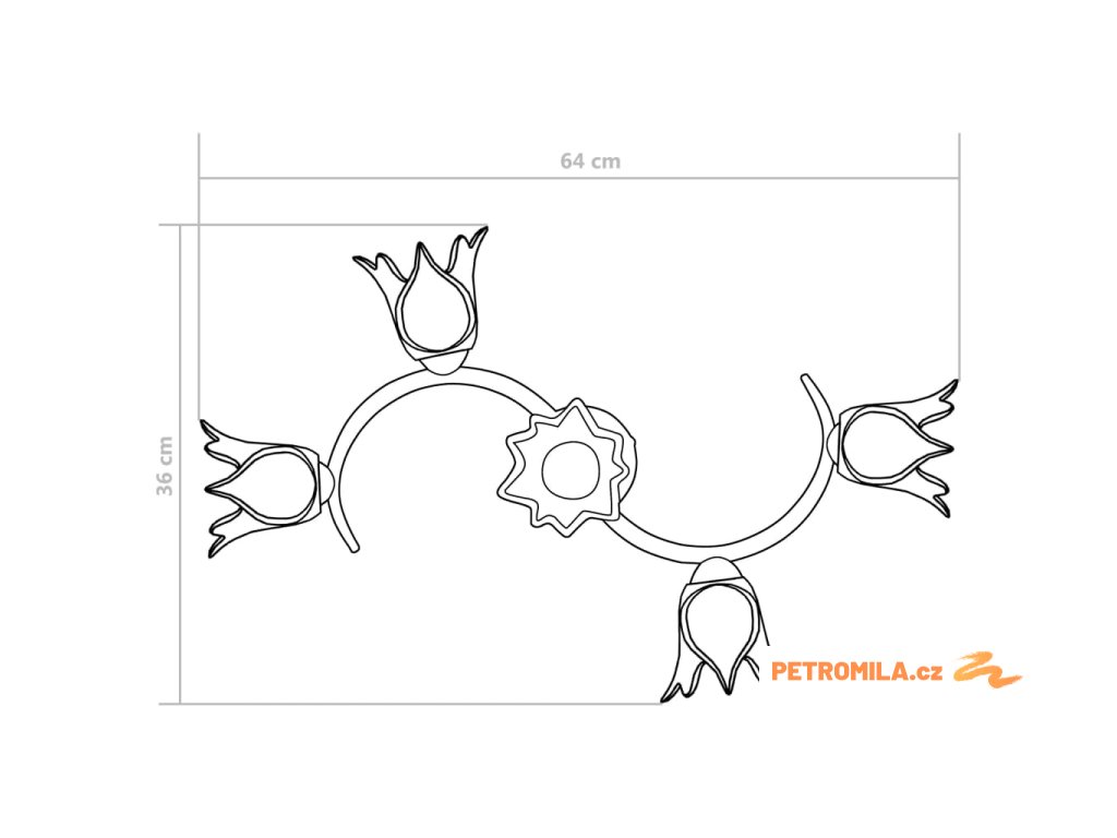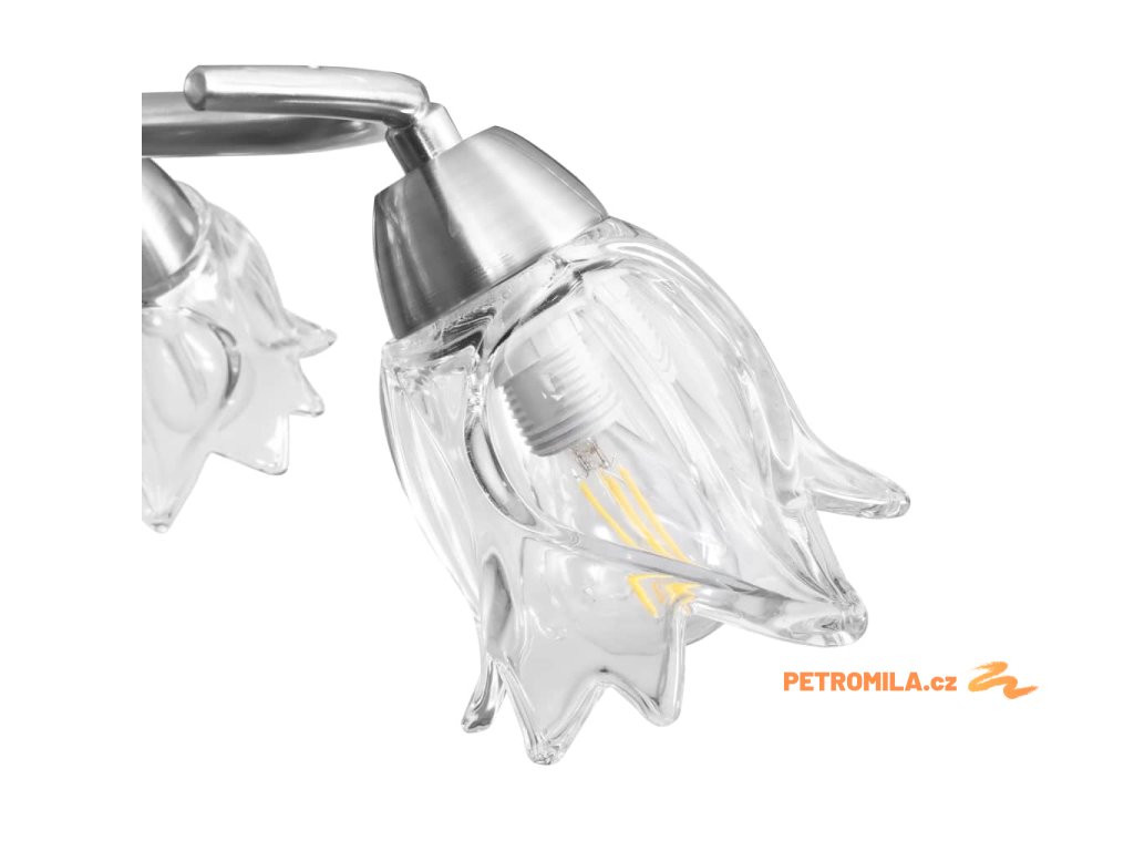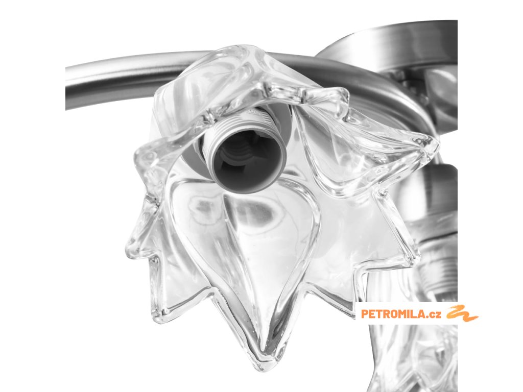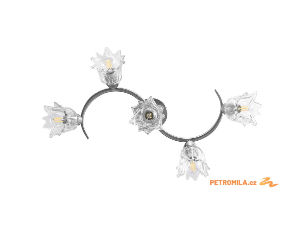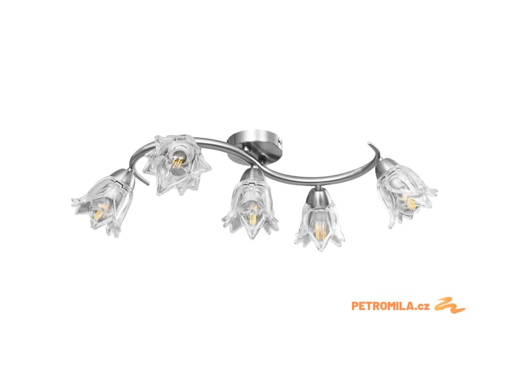 Světlo bez problémů namontujete na všechny typy stropů, jelikož disponuje odolnou kovovou základnou. Elegantní vzhled pak doplňuje pět propletených ramen z pochromované oceli a průhledná skleněná svítidla ve tvaru tulipánů. Saténový chromovaný povrch působí moderním dojmem, takže se svítidlo skvěle hodí do obývacího pokoje nebo ložnice všech stylů zařízení. Lampa se snadno čistí a udržuje – postačí vám navlhčený hadřík.