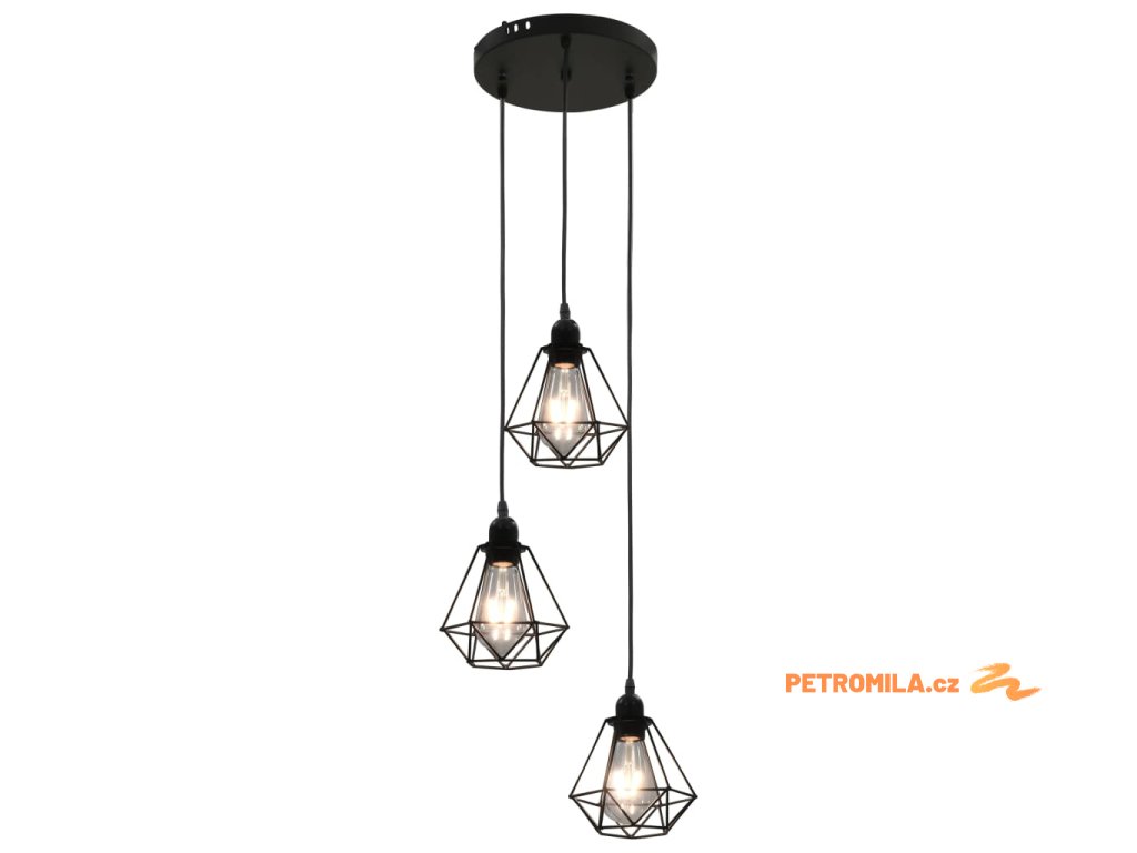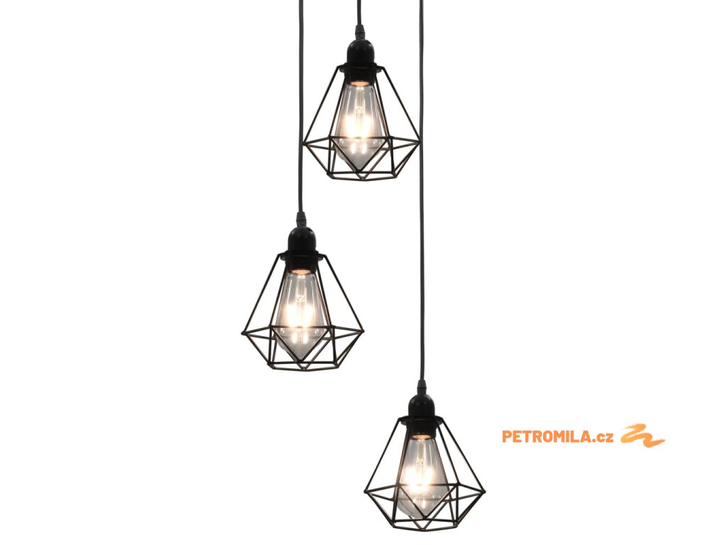Stropní lampa s diamantovým designem černá 3 x žárovka E27