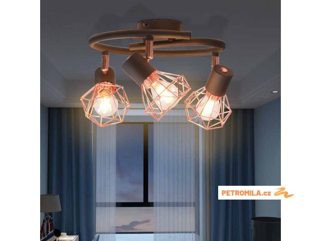 Stropní světlo se 3 bodovkami, E14, černá a měď