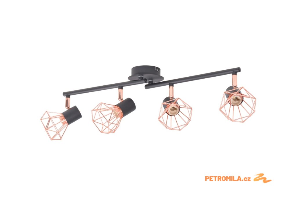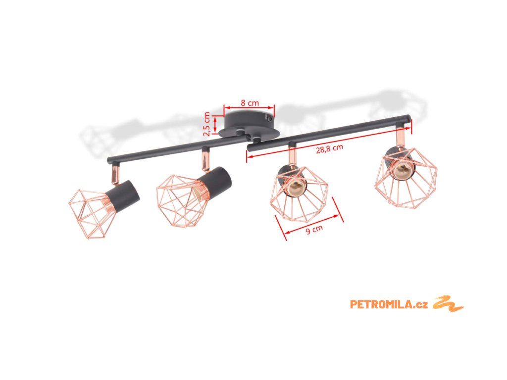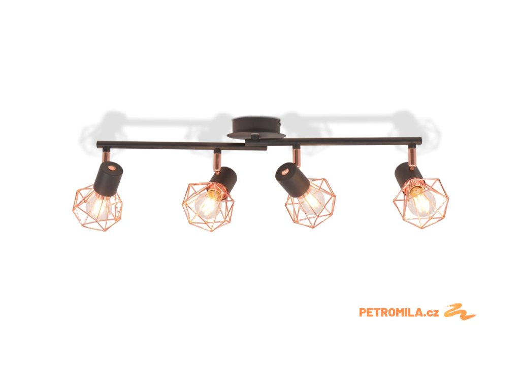 Stropní světlo se 4 bodovkami, E14, černá a měď