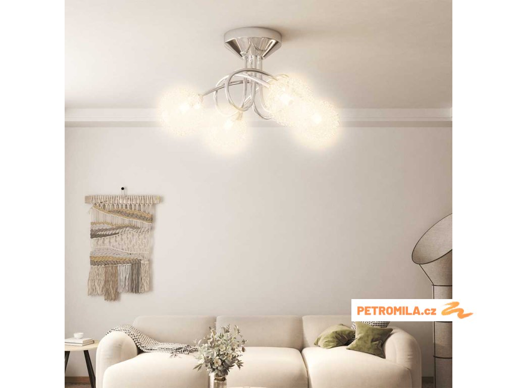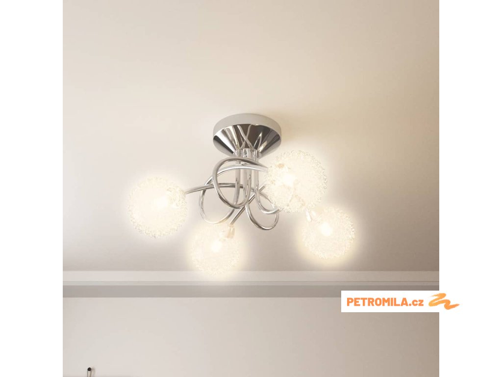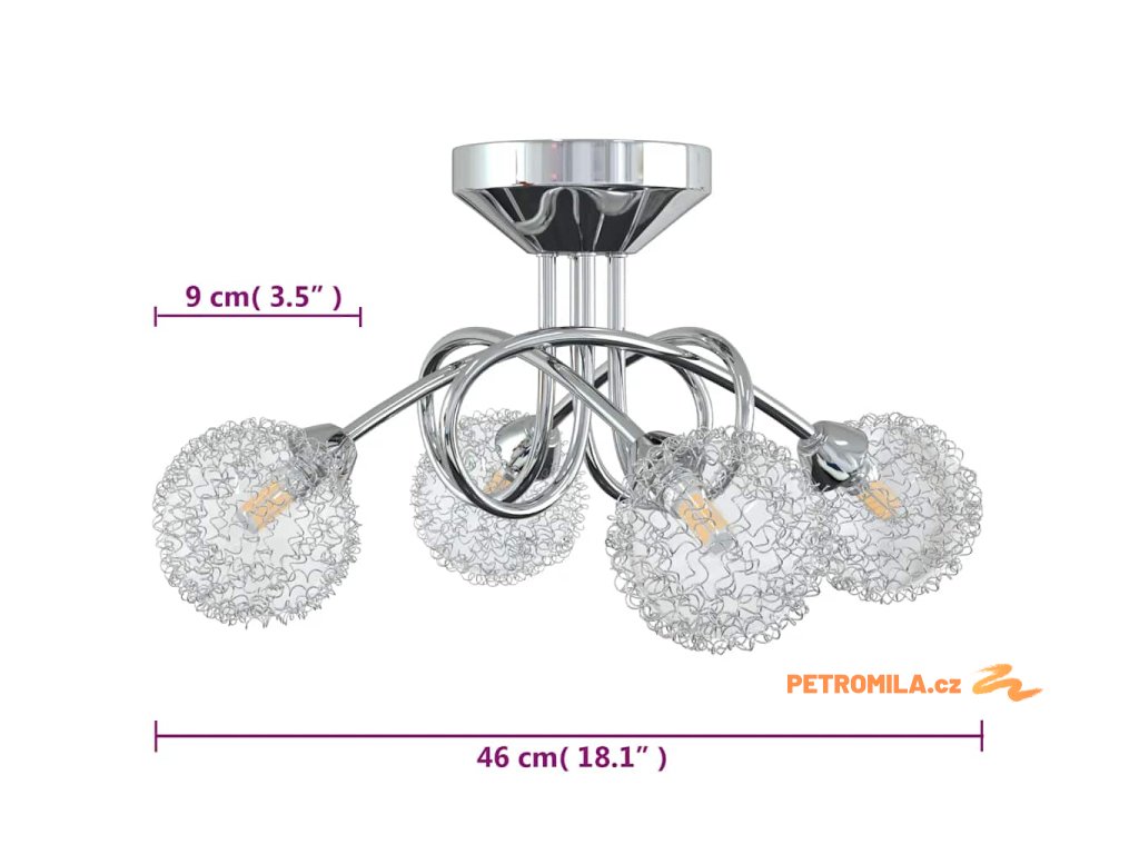 Toto jedinečné stropní svítidlo se 4 skleněnými stínidly pokrytými hliníkovým drátěným pletivem má moderní design a dodá vašemu pokoji úžasný vzhled.
