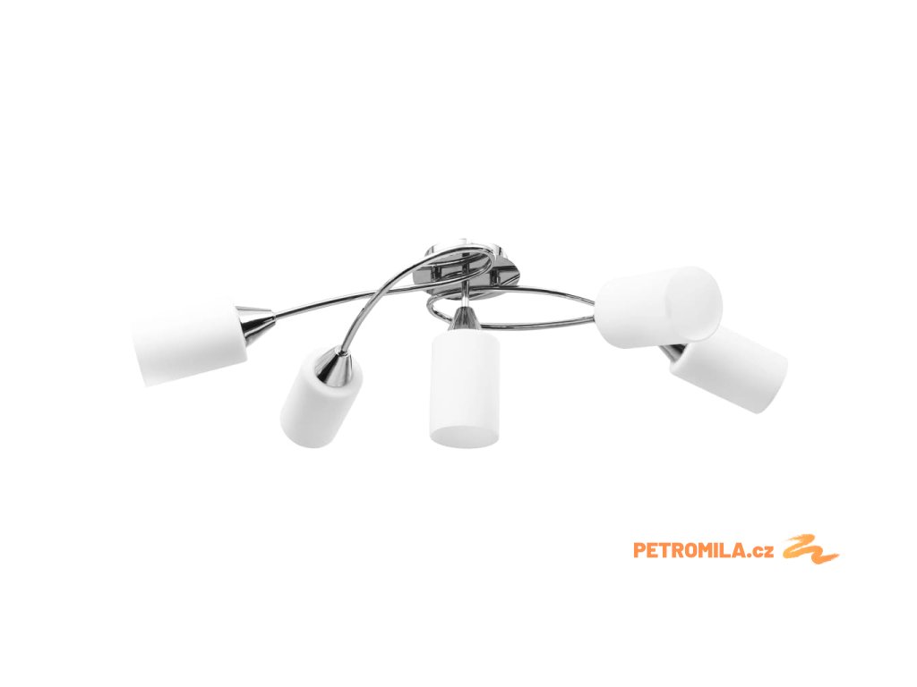 Světlo bez problémů namontujete na všechny typy stropů, jelikož disponuje odolnou kovovou základnou. Elegantní vzhled pak doplňuje pět propletených ocelových ramen a svítidla válcového tvaru. Saténový chromovaný povrch navíc působí moderním dojmem, takže se svítidlo skvěle hodí do obývacího pokoje nebo ložnice s jakýmkoli stylem zařízení. Lampa se snadno čistí a udržuje – postačí vám navlhčený hadřík.