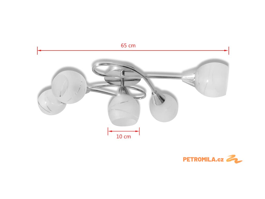 Stropní svítidlo se skleněnými stínidly na 5 žárovek E14