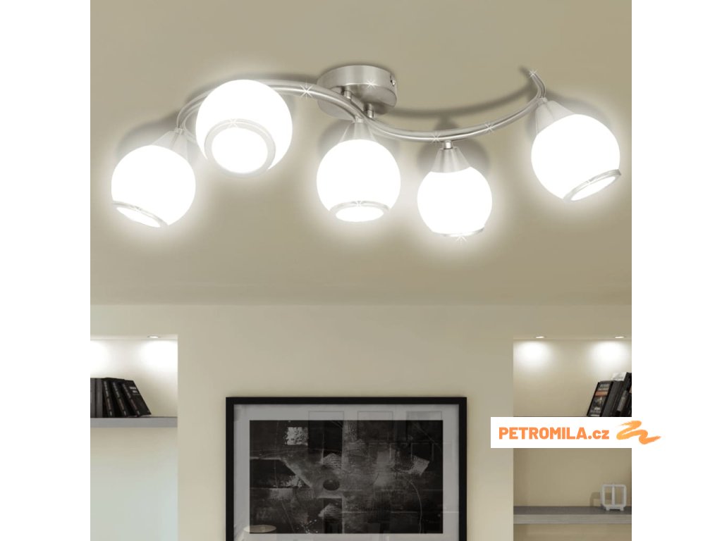 Tato lampa se díky své kvalitní kovové základně dá snadno namontovat na jakýkoliv strop. Stínítka z opálového skla se stříbrnými okraji, umístěná na zvlněné kovové kolejnici, dodávají svítidlu elegantní vzhled. Světlo bude nádherně prosvítat těmito jemnými opálovými skleněnými stínítky a prozáří všechny kouty místnosti. Toto exkluzivní stropní svítidlo bude zaručeně vynikat svou příjemnou jednoduchostí.