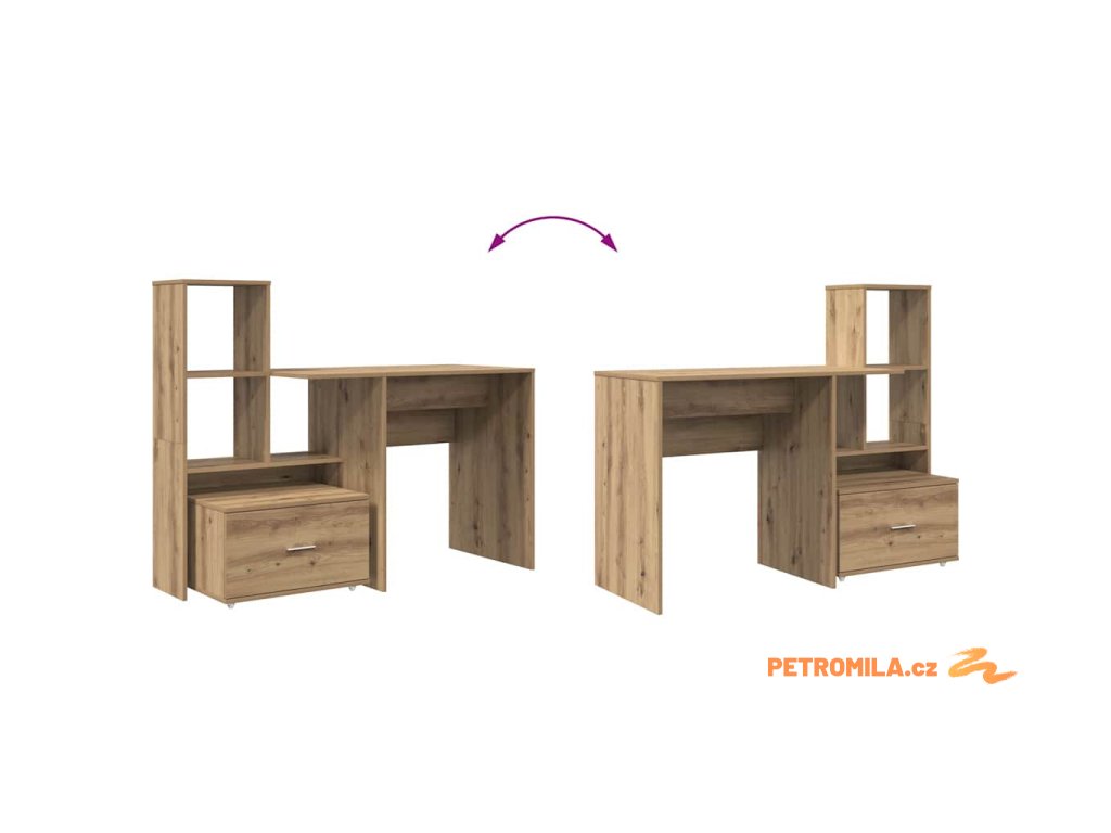 - Integrované úložné komponenty: S polici a zásuvkami z inženýrského dřeva ti stůl poskytne dostatek místa na knihy, dokumenty a kancelářské potřeby. Pomáhá udržet pracovní prostor v pořádku a funguje jako stůl i úložná jednotka.
