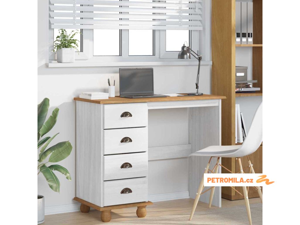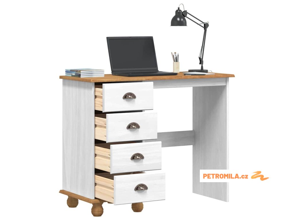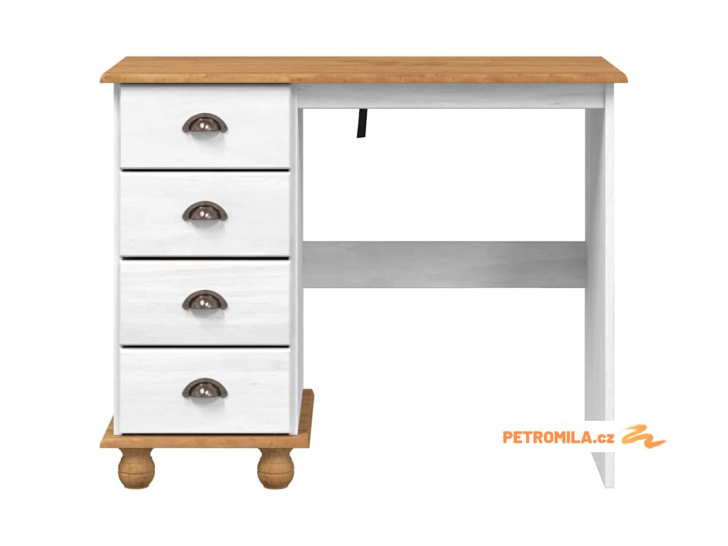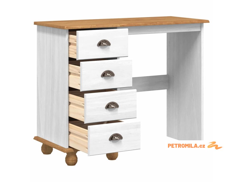 - Konstrukce z masivního borového dřeva Tenhle psací stůl je vyrobený z odolného borového dřeva, který je známý svojí sílou a trvanlivostí. Je to stabilní místo pro práci nebo kreativitu, které spojuje přírodní krásu s dlouhou životností.