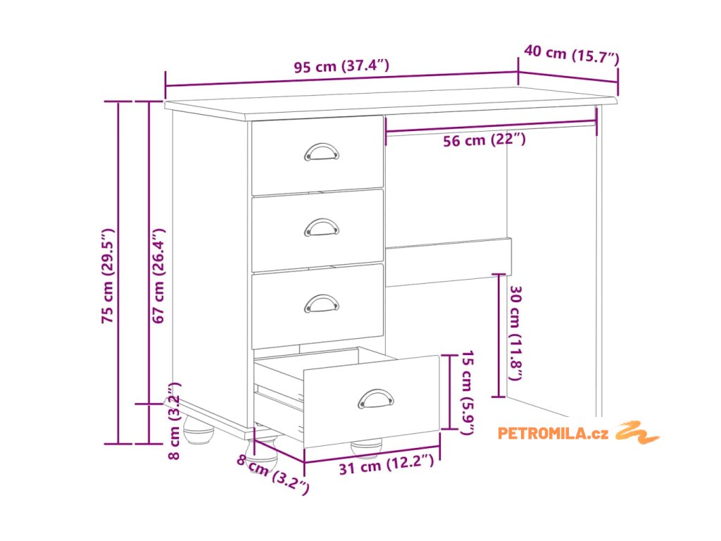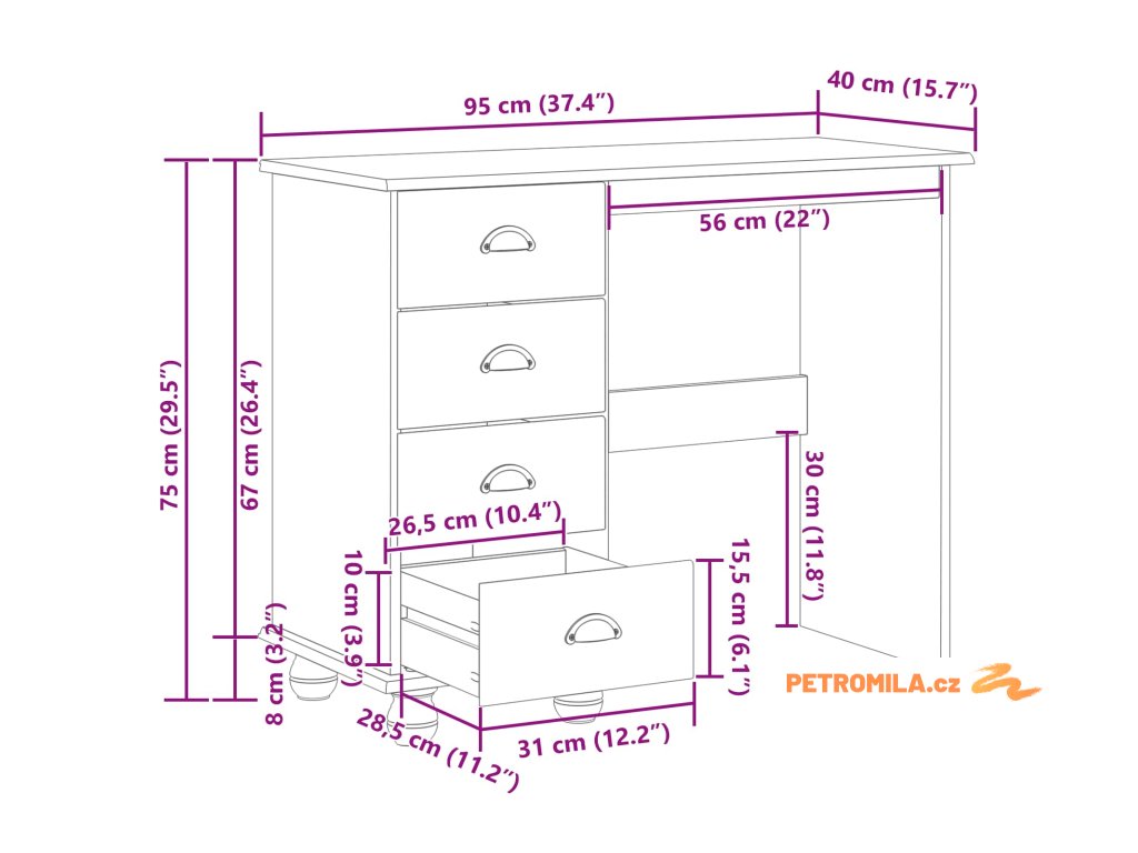 - Funkční úložný zásuv Se zásuvkou z masivního borového dřeva nabízí stůl skvělé řešení pro organizaci pracovního prostoru. Zásuvka má spoustu místa pro nezbytnosti, což pomáhá udržet stůl uklizený a zvyšuje produktivitu.