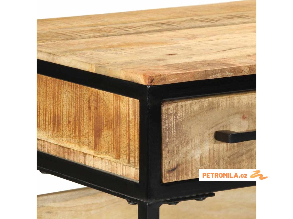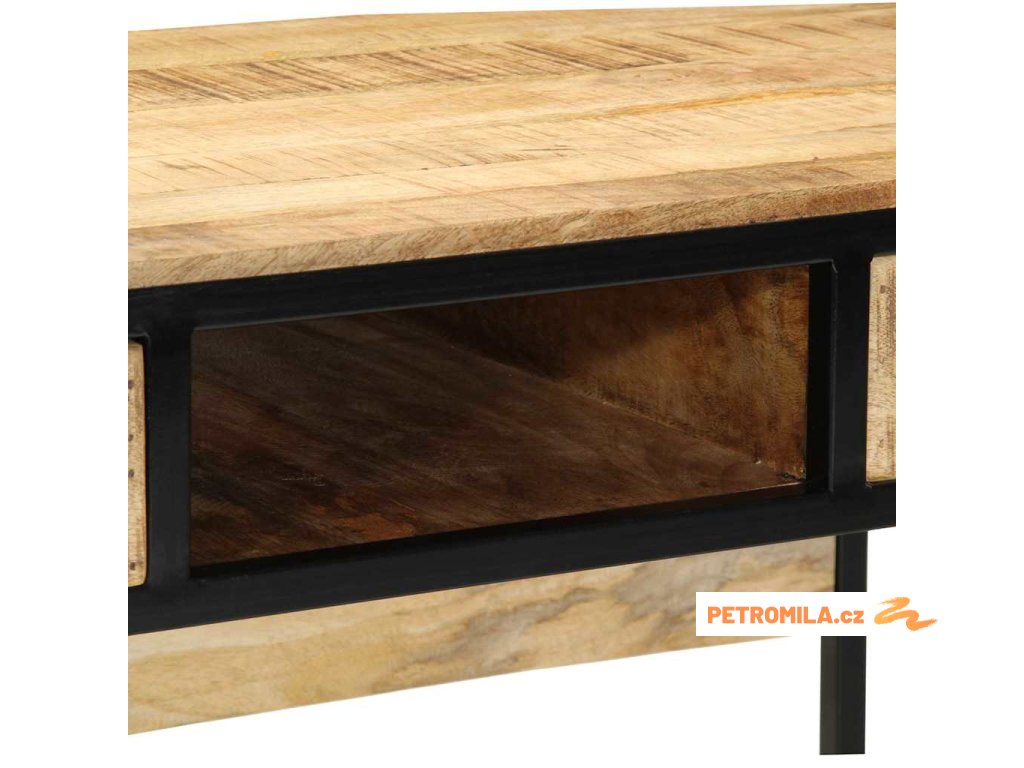 - Obsahuje součásti: Díky policím z masivního mangového dřeva nabízí tento stůl univerzální úložné možnosti, aby vaše nezbytnosti byly přehledně uspořádané. Tyto police jsou navrženy pro praktičnost, poskytují dostatek prostoru na knihy, kancelářské potřeby nebo dekorace.
