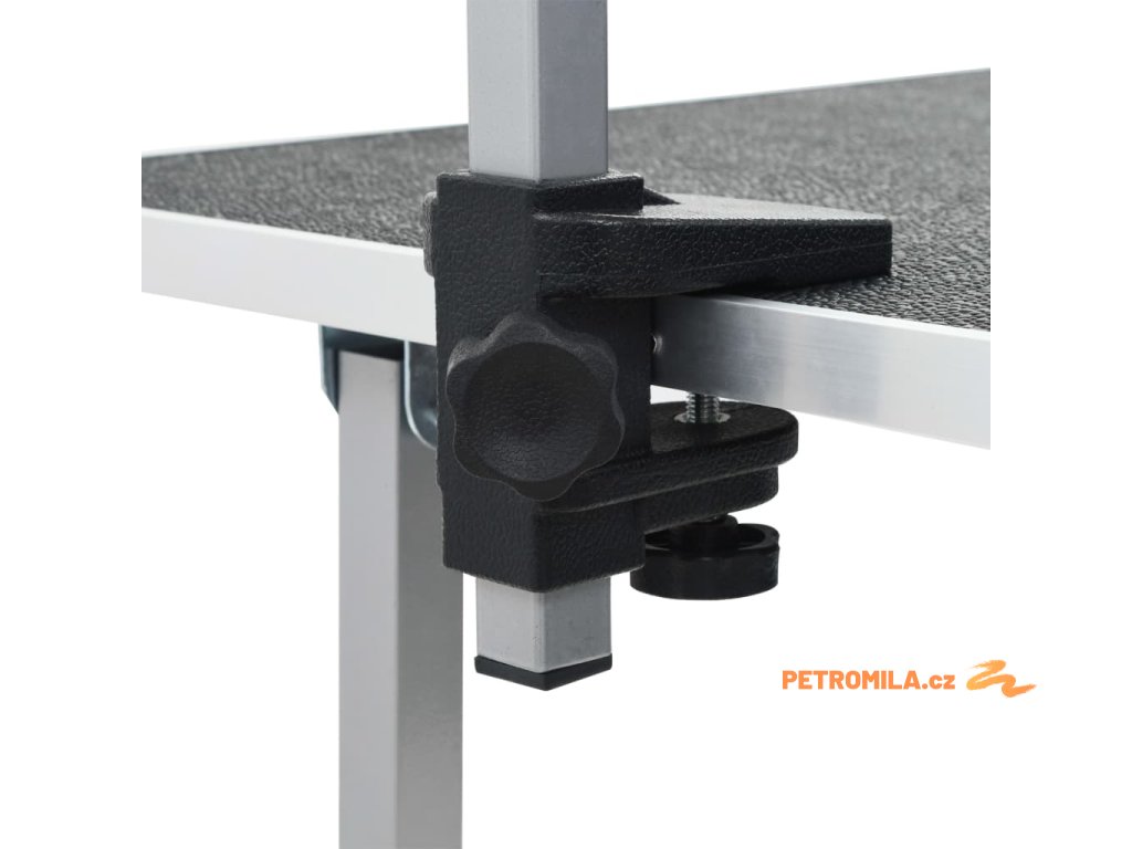 Vysoce odolné a kvalitní rameno se dá navíc prakticky odmontovat, když stůl zrovna nepoužíváte, takže ho budete moci snadno uskladnit nebo přepravovat, a v neposlední řadě má výškově nastavitelné provedení, které je ergonomické. Nastavitelné smyčky bezpečně udrží zvíře v potřebné poloze a jsou opatřeny inovovanou zacvakávací posuvnou sponou.