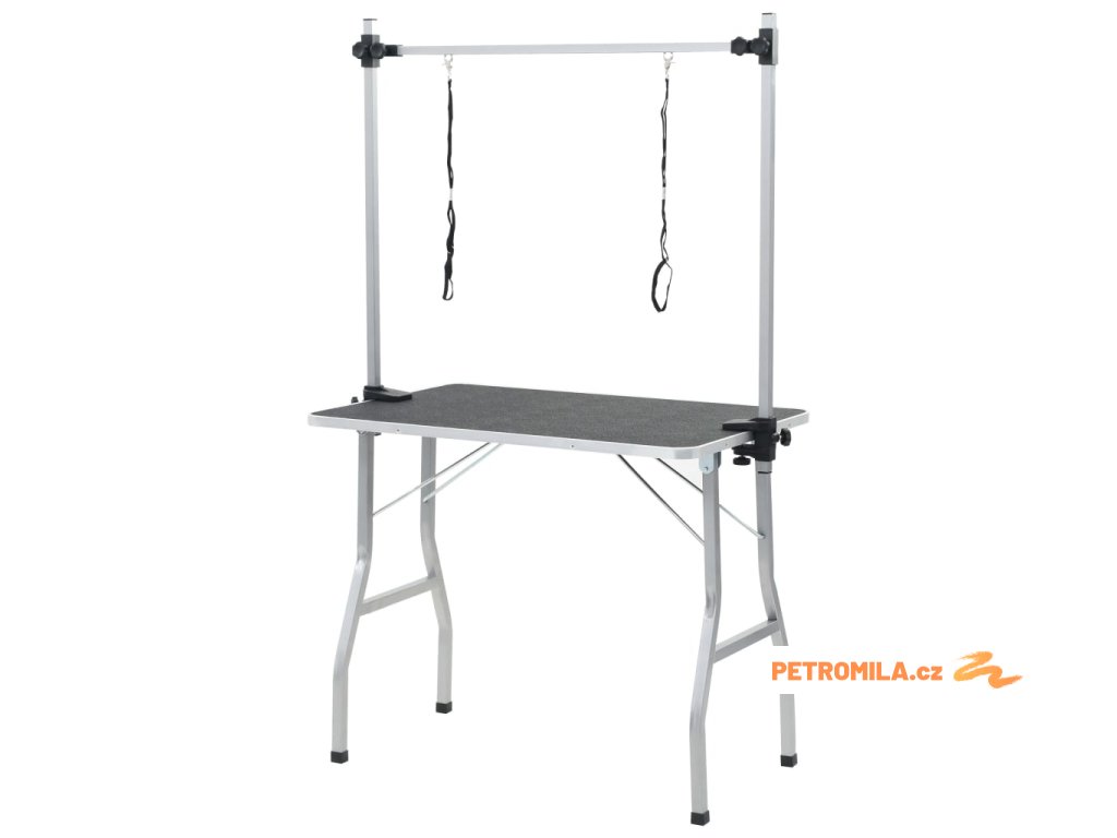 Tento stůl na střihání je ideální pro domácí a mobilní úpravy, výstavy psů apod. Je vybaven protiskluzovou deskou a železným rámem s práškovým nástřikem a má nastavitelné rameno se smyčkou.