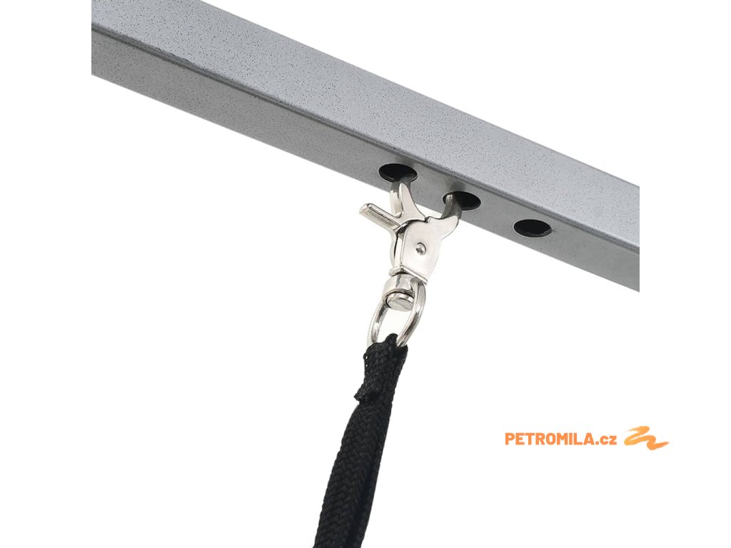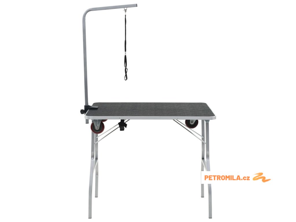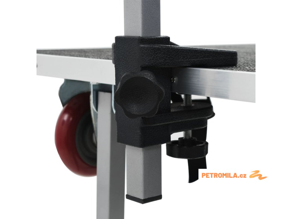 Tento stůl sloužící na stříhání a úpravu domácích mazlíčků lze použít doma , ale i přenášet . Profesionální nastavitelný stůl na ošetření vám umožní perfektně si nastavit svého chlupáče při koupání , česání , sušení a podobně . Má protiskluzový povrch , železný rám ošetřený postřiků, nastavitelné rameno a smyčku . Povrch stolu je ošetřen protiskluzovou gumou , která vašemu zvířeti poskytne pohodlný povrch ke stání během čištění . Nastavitelné rameno pevně udrží vašeho miláčka a má pohyblivou sponu na zamykání . Rameno se dá odmontovat , takže když se stůl nepoužívá , dá se lépe přenášet a skladovat . Stůl má kolečka , díky čemuž se snadno přenáší . Dodáváme ho spolu s montážním příslušenstvím .