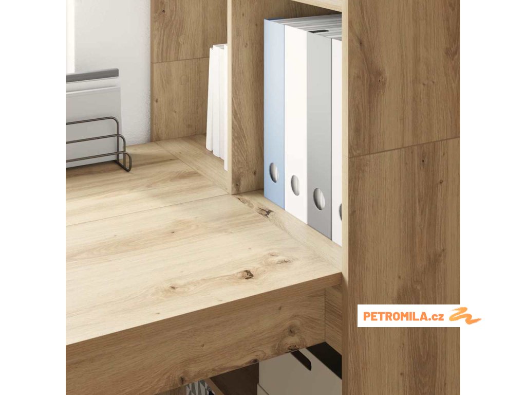 - Praktické police: Přihrádky u stolu jsou skvělé pro snadný přístup k knihám, kancelářským potřebám a dalším věcem. Udržují vše přehledně uspořádané a vypadá to elegantně.
