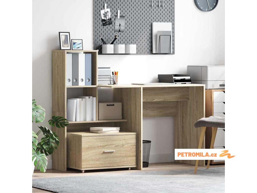 - Dostatek úložného prostoru S regály a zásuvkami z kompozitního dřeva, tenhle stůl nabízí spoustu úložných možností. Zásuvky a police jsou ideální na schování knih, psacích potřeb a dalších kancelářských drobností, což ti pomůže udržet pracovní prostor uklizený. Je natolik univerzální, že splní všechny tvoje úložné potřeby.
