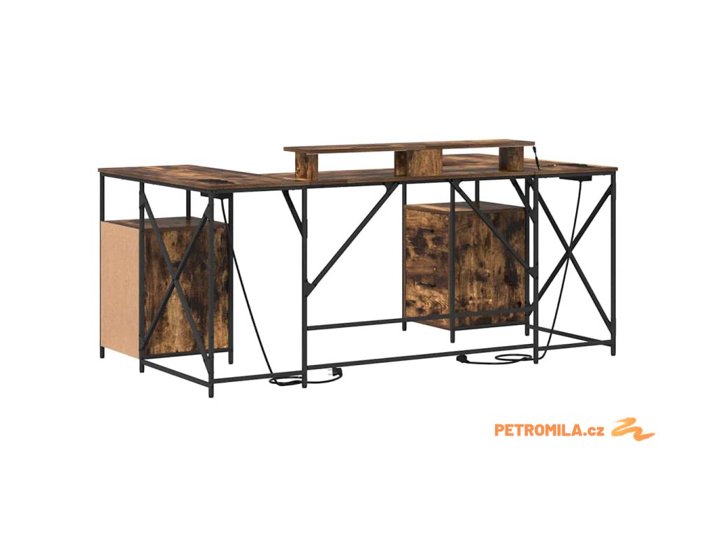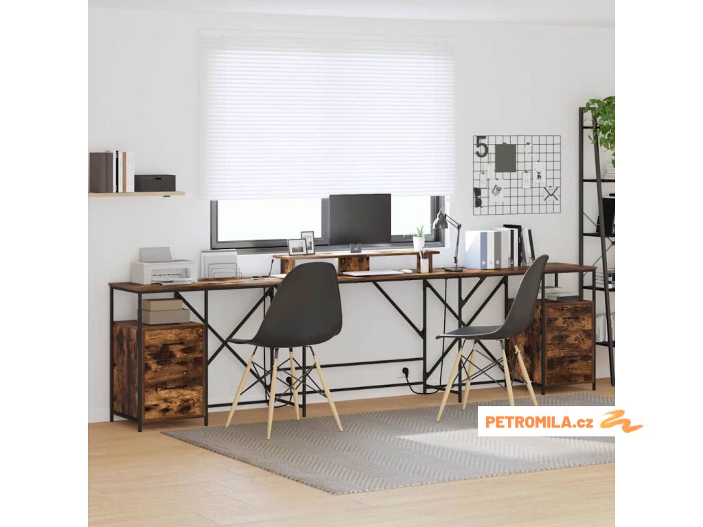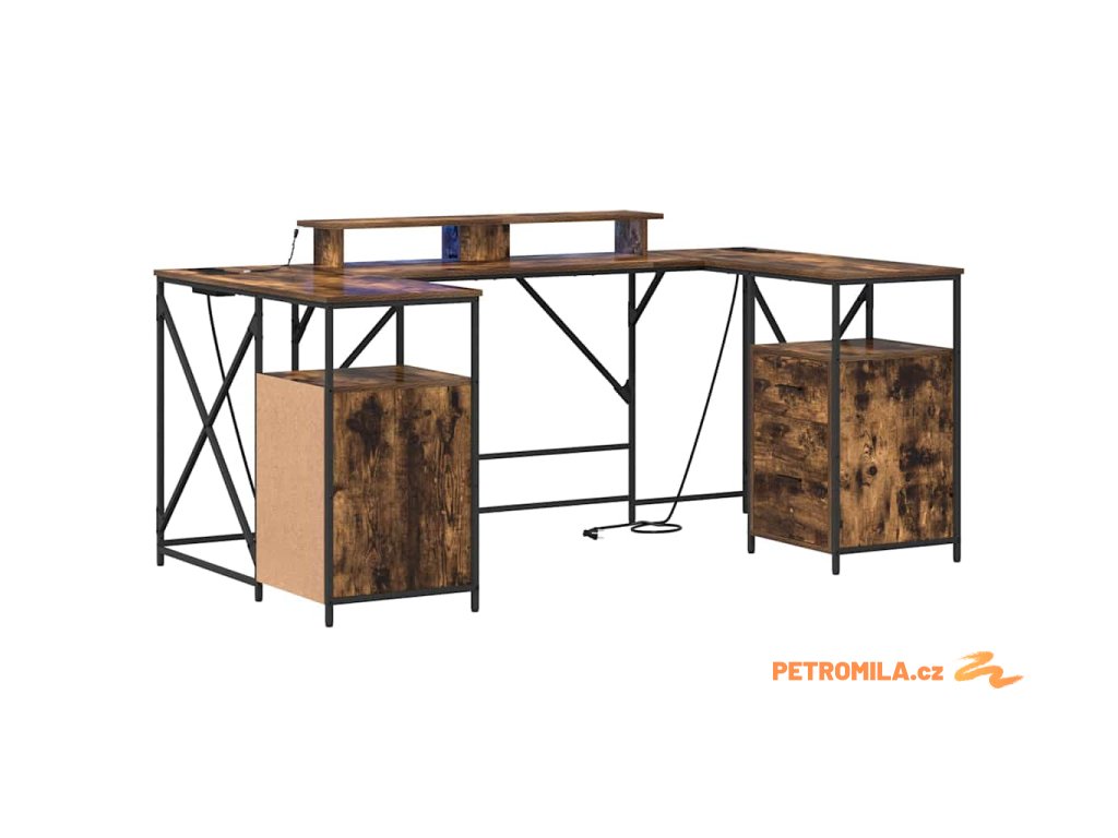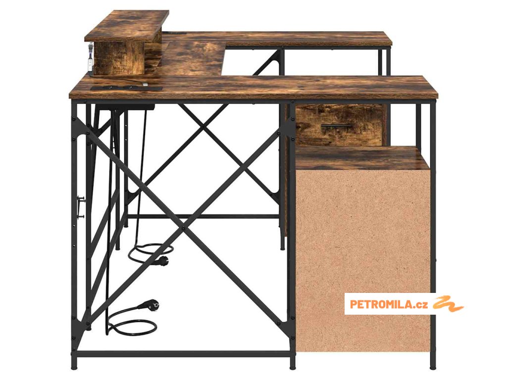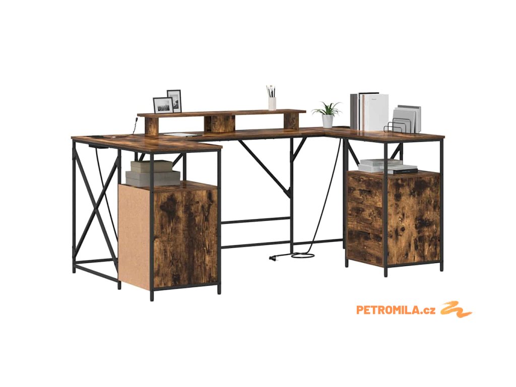 - Praktická řešení pro úložný prostor: Doplňuje ho klasické šuplíky a police v chytré dispozici, takže je tu dost místa pro organizaci kancelářských potřeb a osobních věcí.