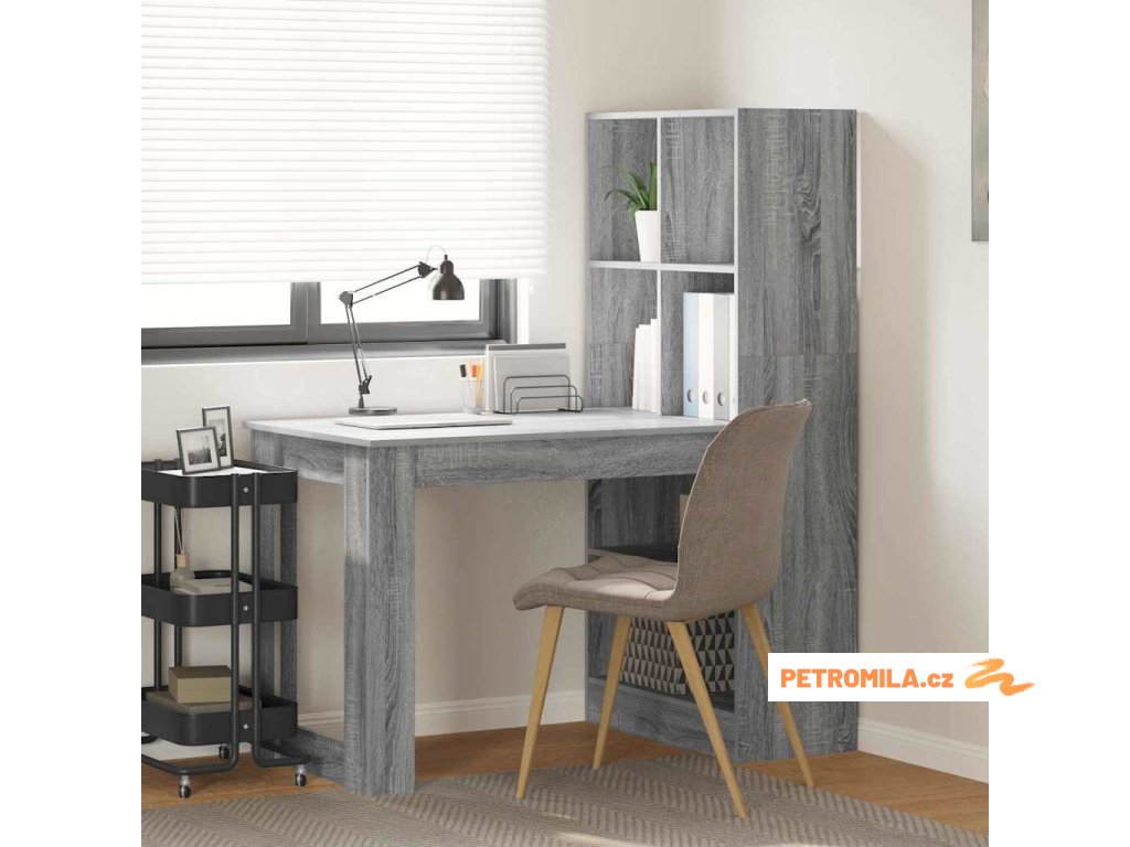 - Praktické poličky: Stůl má poličky, kde pohodlně dosáhneš na knihy a kancelářské potřeby. Jen si to takhle všechno udržuješ organizované a elegantní.