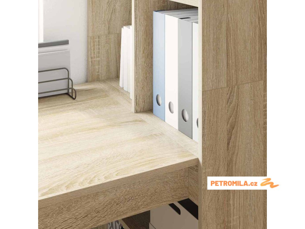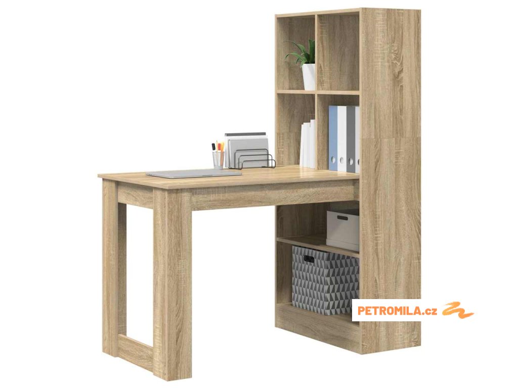- Praktické police: Přihrádky u stolu jsou skvělé pro snadný přístup k knihám, kancelářským potřebám a dalším věcem. Udržují vše přehledně uspořádané a vypadá to elegantně.