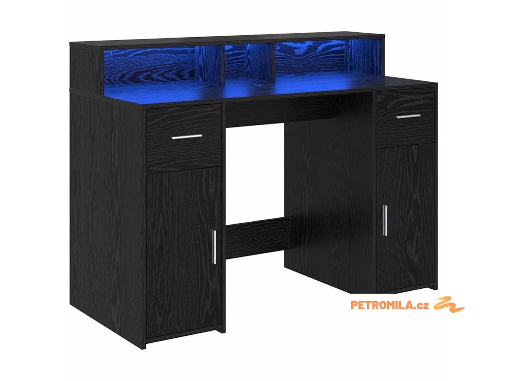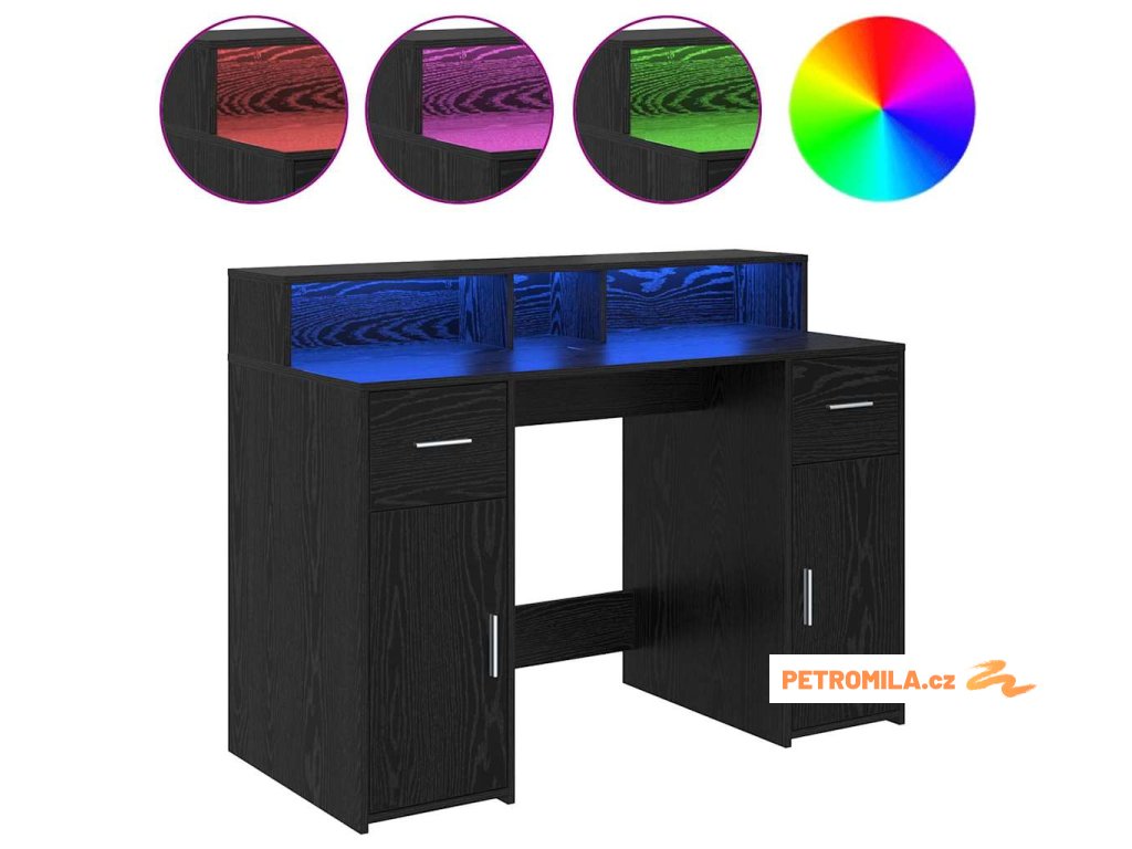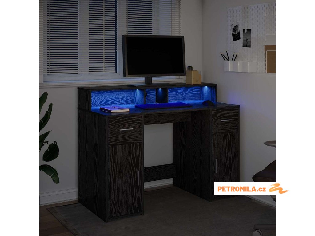 - Integrované LED osvětlení: Stůl má LED pásky, které osvětlují tvůj pracovní prostor příjemným světlem. Pomohou ti lépe vidět a snížit únavu očí. Osvětlení si můžeš snadno přizpůsobit podle své nálady nebo denní doby – to je super praktické!