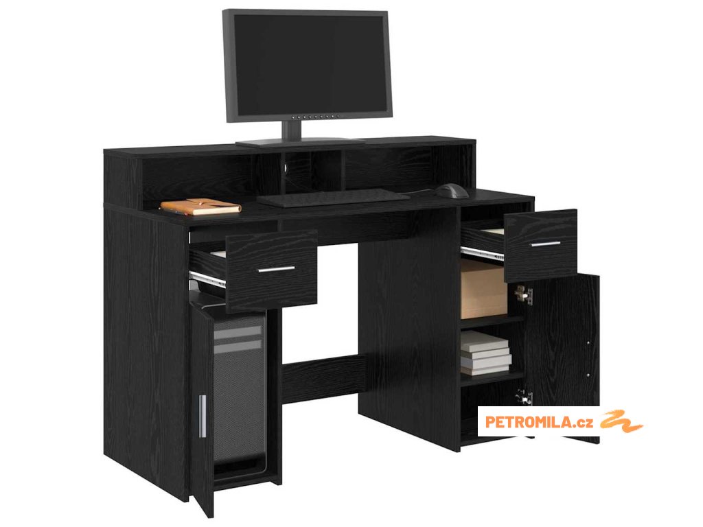 - Efektivní úložné řešení: Díky zásuvkám, dvířkům a policím, tento stůl se zaměřuje na to, aby splnil všechny tvoje úložné potřeby. Oddělení jsou pečlivě uspořádaná, takže máš důležité dokumenty, kancelářské potřeby a gadgety vždy po ruce. Tím udržíš prostor uklizený, což ti pomůže být efektivnější.