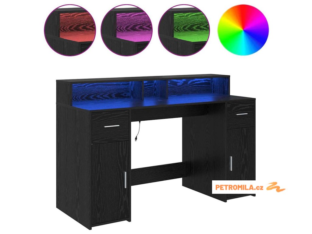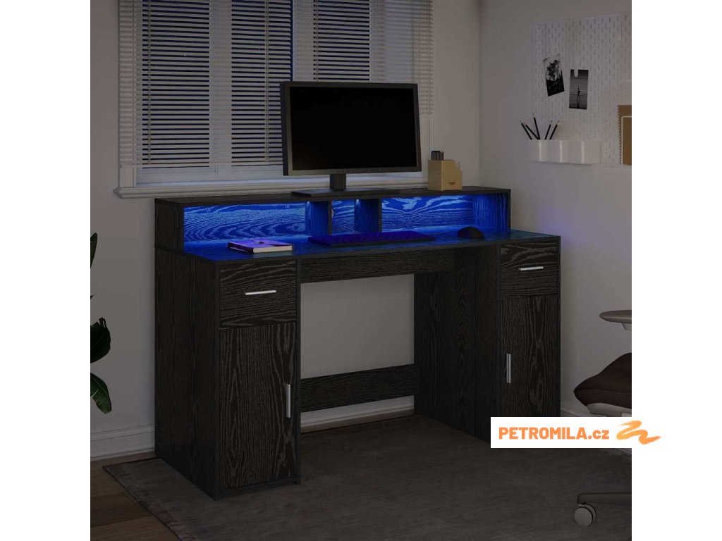 - Integrované LED osvětlení: Stůl má LED pásky, které osvětlují tvůj pracovní prostor příjemným světlem. Pomohou ti lépe vidět a snížit únavu očí. Osvětlení si můžeš snadno přizpůsobit podle své nálady nebo denní doby – to je super praktické!