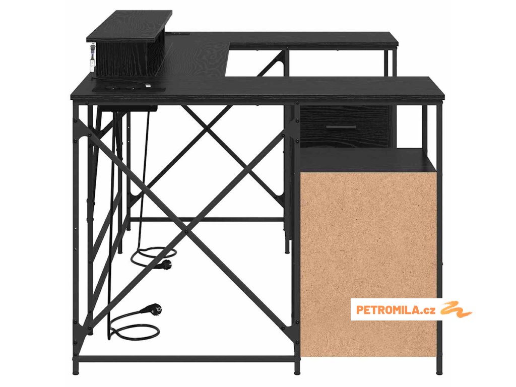 - Praktická řešení pro úložný prostor: Doplňuje ho klasické šuplíky a police v chytré dispozici, takže je tu dost místa pro organizaci kancelářských potřeb a osobních věcí.