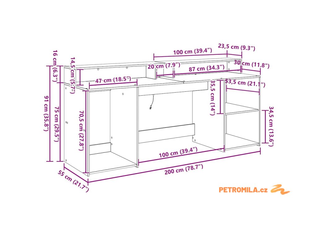 - Celkové rozměry: 200 x 55 x 91 cm (Š x D x V)