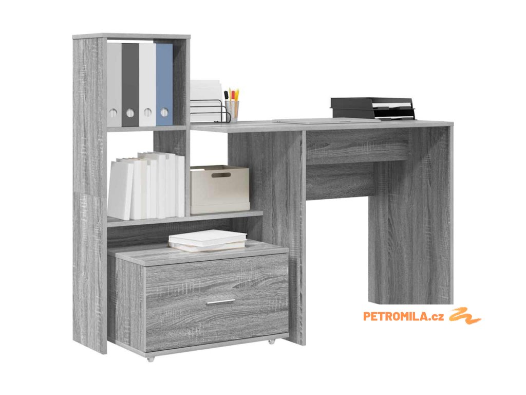 - Integrované úložné komponenty: S polici a zásuvkami z inženýrského dřeva ti stůl poskytne dostatek místa na knihy, dokumenty a kancelářské potřeby. Pomáhá udržet pracovní prostor v pořádku a funguje jako stůl i úložná jednotka.