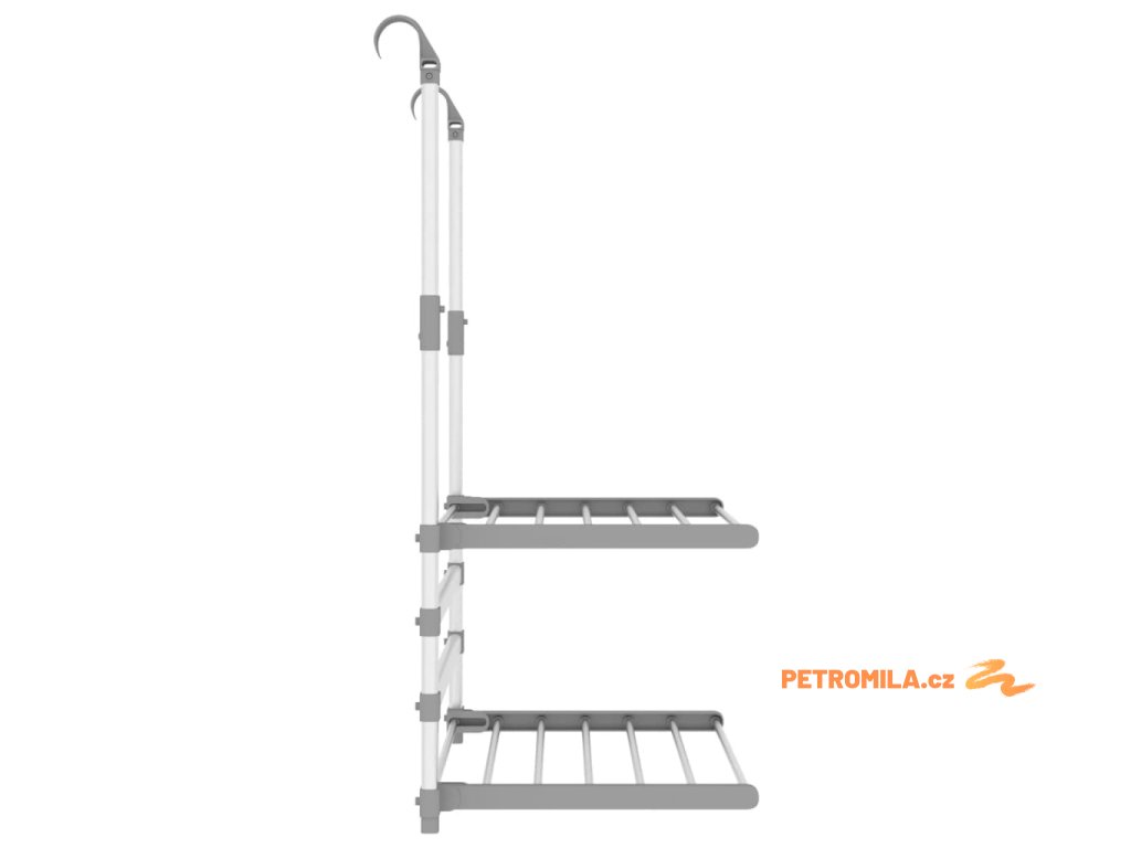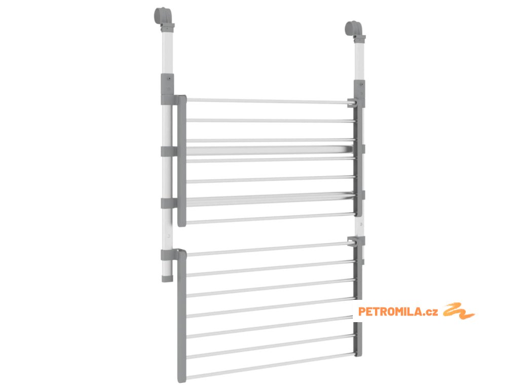 - Skládací funkce: Jednotlivá patra sušáku jsou samostatně skládací, takže lze snadno sušit delší kusy prádla. Pokud se nepoužívají, lze obě sklopit, aby se ušetřilo místo.