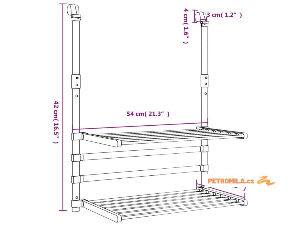 Sušák na prádlo na balkon 54 x 25 x 42 cm hliník