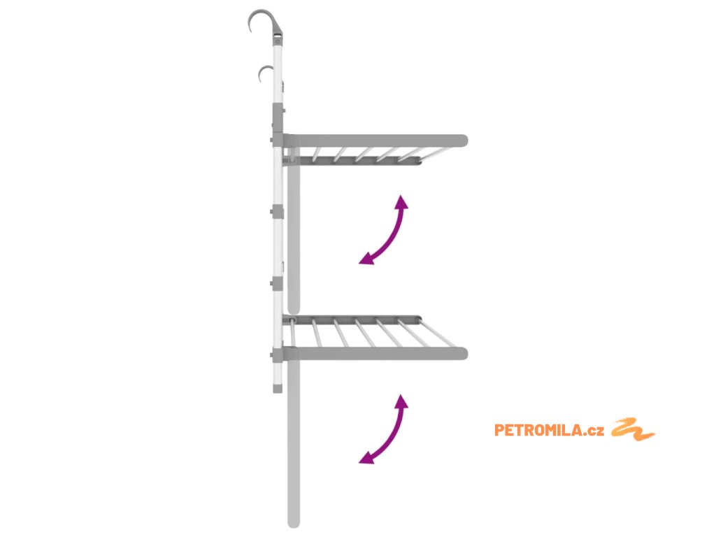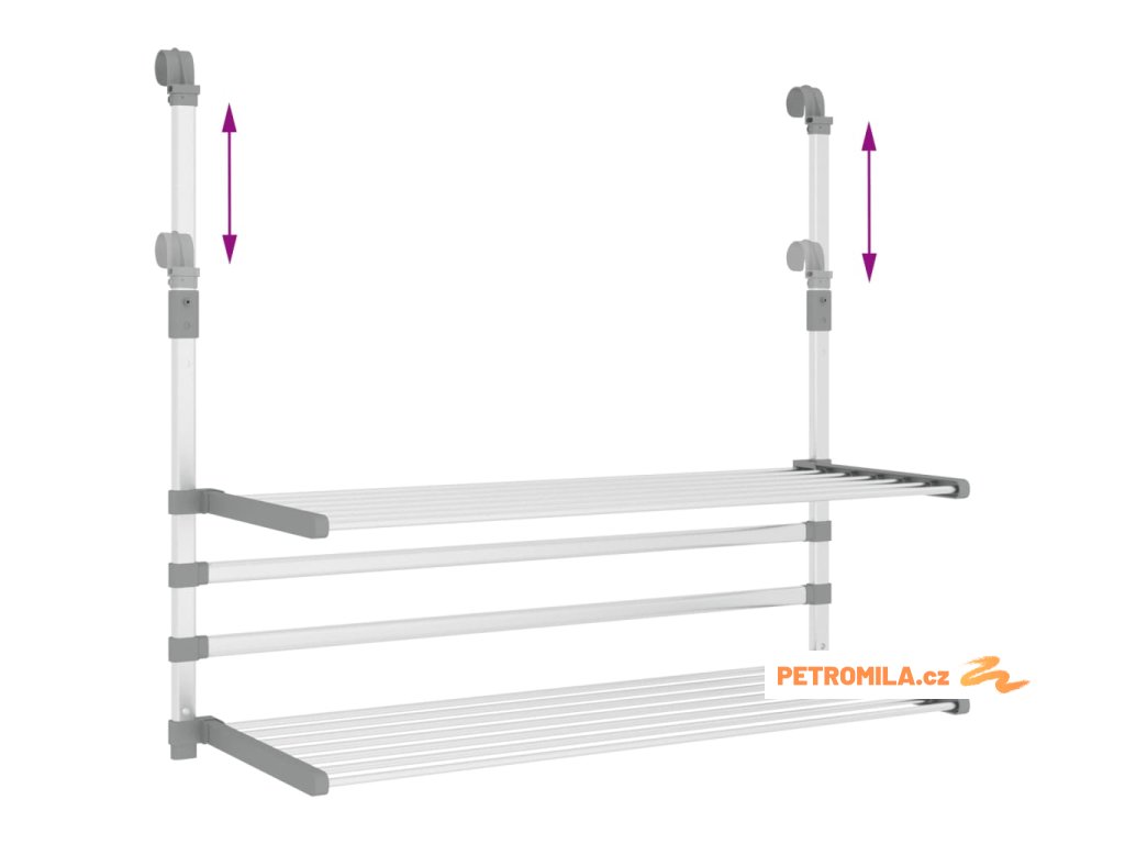 - Skládací funkce: Jednotlivá patra sušáku jsou samostatně skládací, takže lze snadno sušit delší kusy prádla. Pokud se nepoužívají, lze obě sklopit, aby se ušetřilo místo.