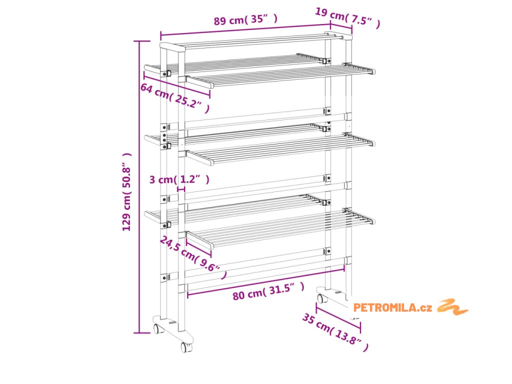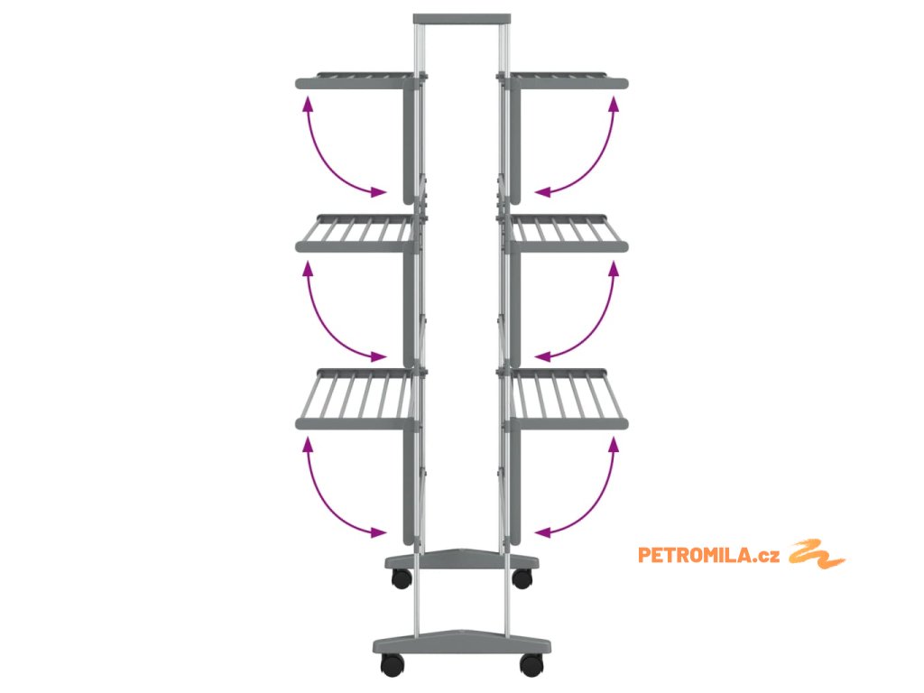 Tento 3patrový sušák na prádlo je ideální volbou pro rodiny s omezeným prostorem pro sušení prádla!