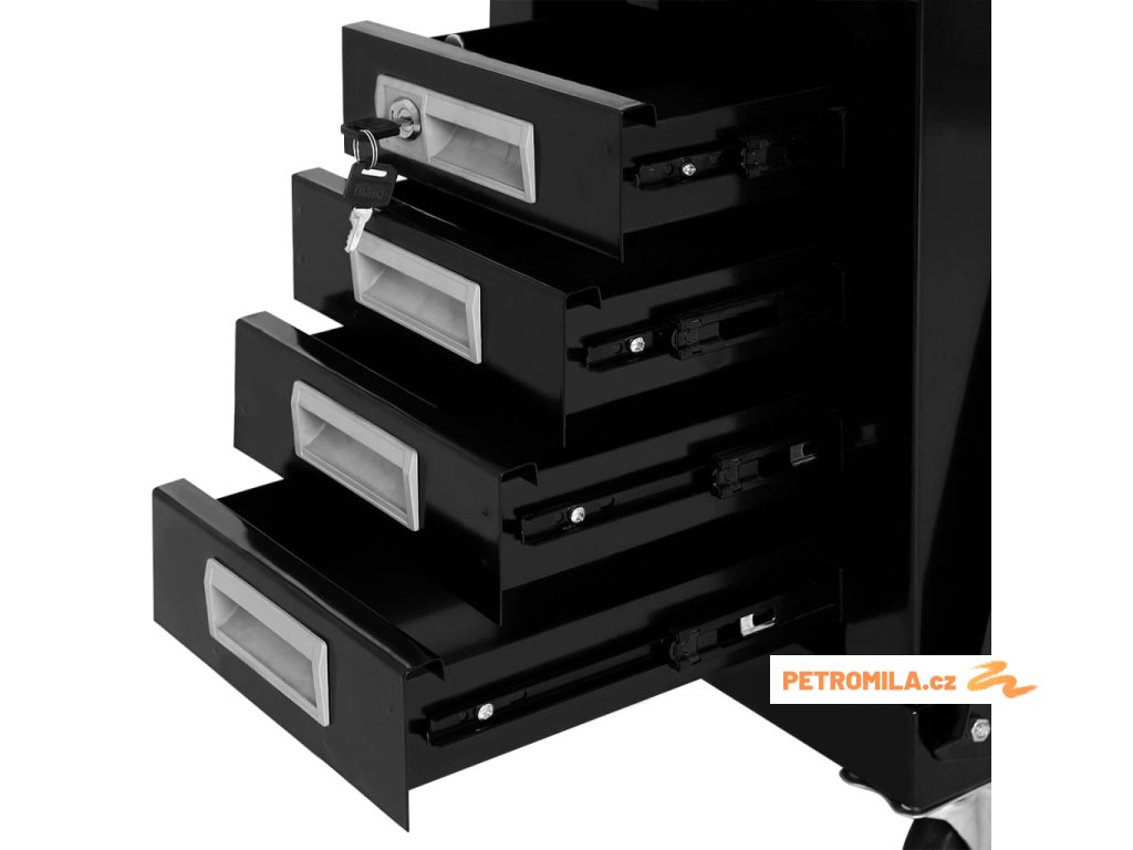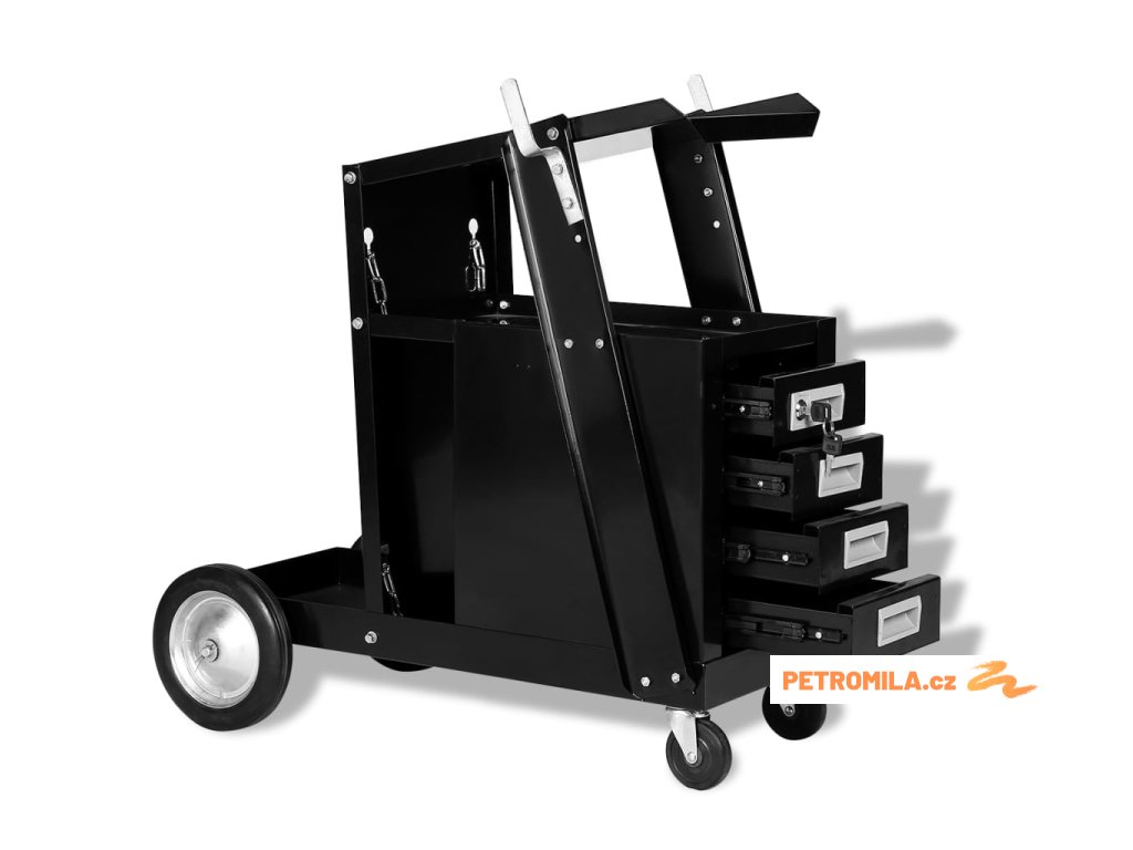 Odolný a spolehlivý svařovací vozík je vyroben z prémiové oceli. Unese až 70 kg. Díky vestavěným kolům s ním lze hladce a snadno pohybovat. Jeho 4 zásuvky mají dostatek místa pro uspořádání a ukládání svářečského nářadí. Všechny 4 zásuvky mohou být současně zamčeny integrovaným zámkem, který zabraňuje náhodnému otevření zásuvek při pohybu vozíku.