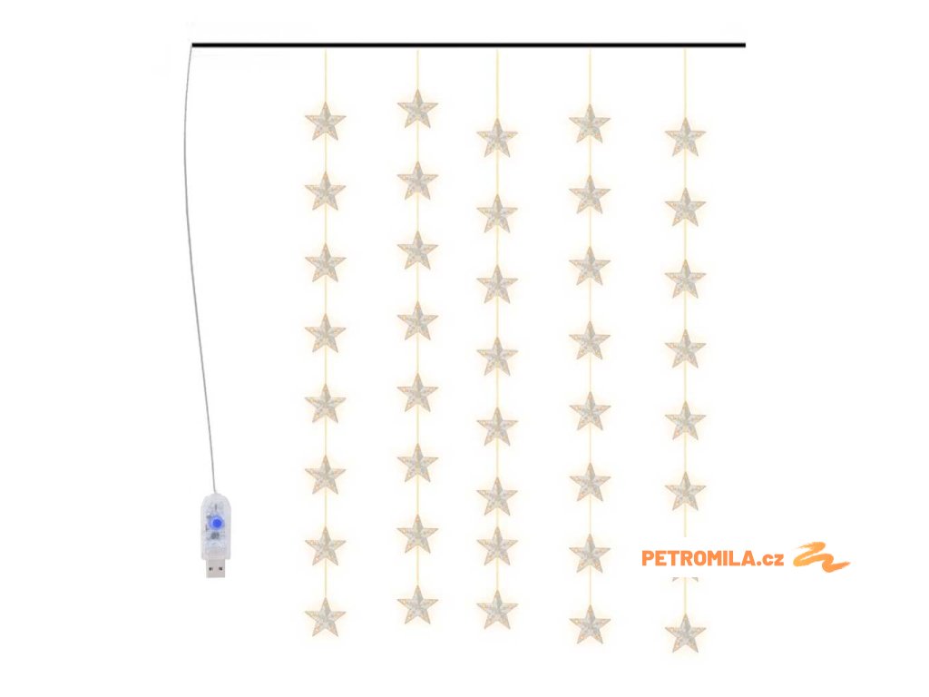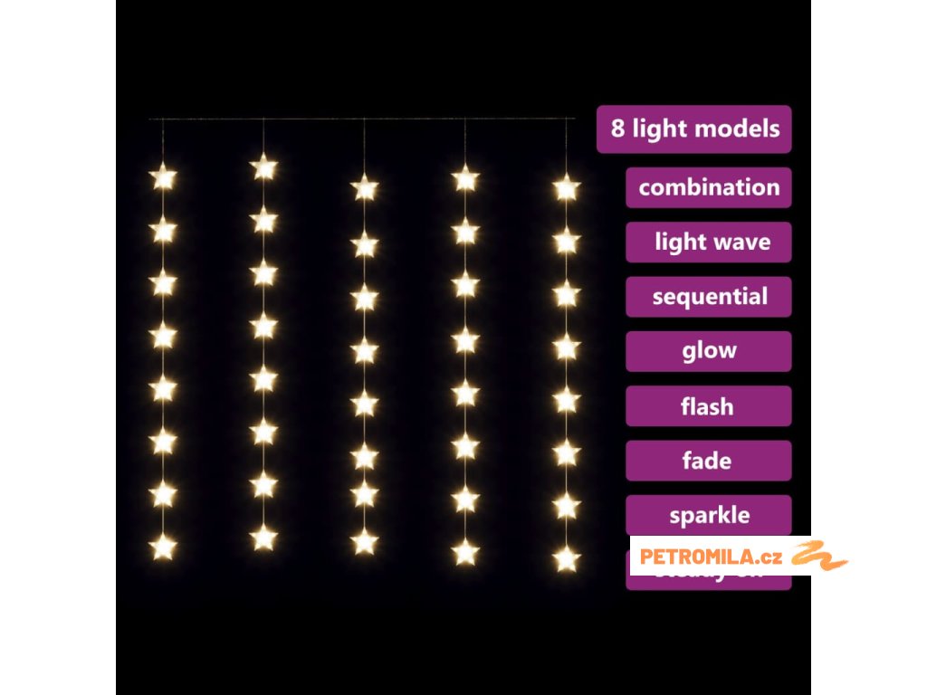 Světelný závěs hvězdičky 200 LED teplé bílé světlo 8 funkcí