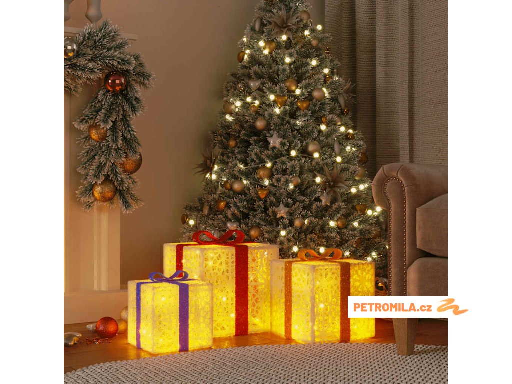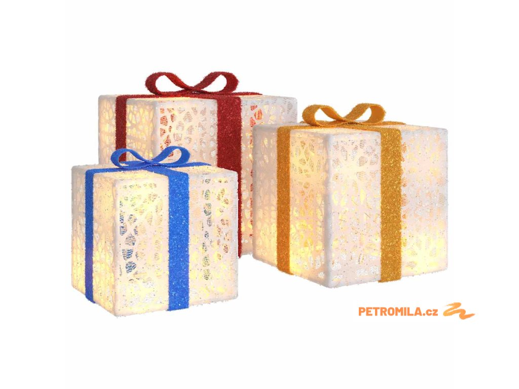 Svítící vánoční dárky 3 ks 64 teple bílých LED